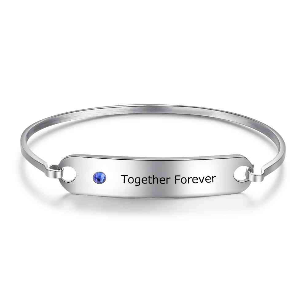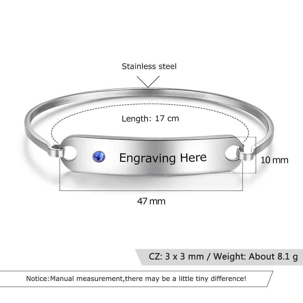 Personalized Bracelets with 1 Birthstone Women Engraved Bangle Bracelets