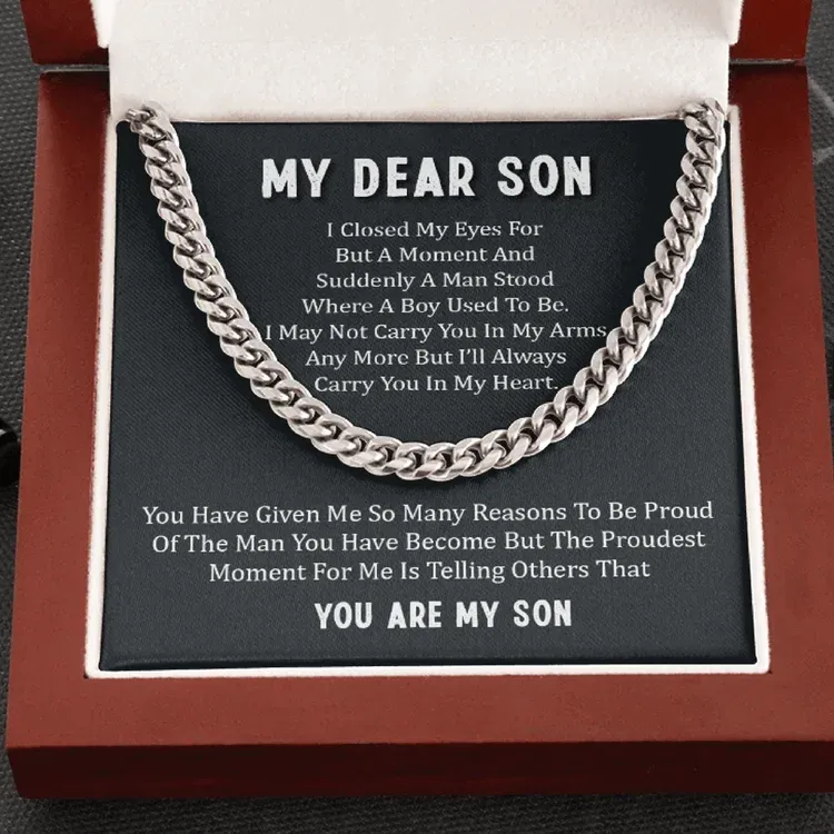 To My Dear Son Cuban Chain Necklace Stainless Steel Necklace Warm Gifts