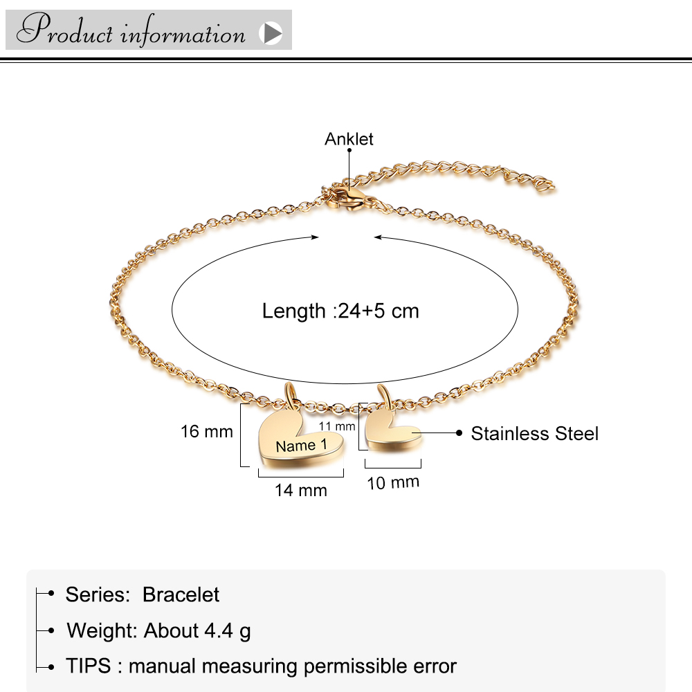 Personalized Anklet with Heart Charms Engraved Name Anklet for Women