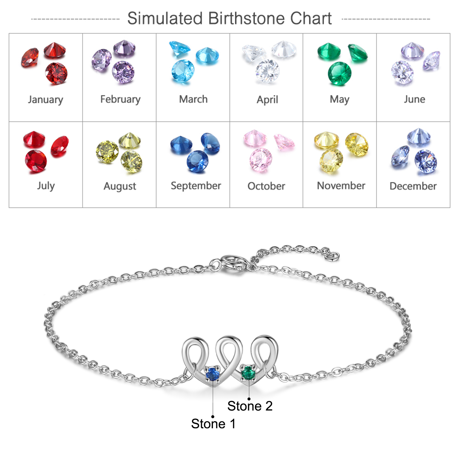 Personalized Heart Anklet with 2 Birthstones Family Anklet