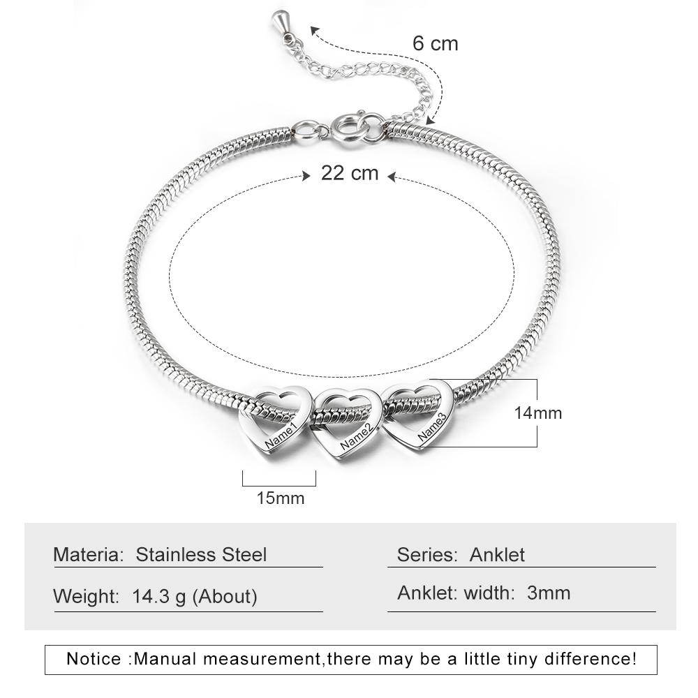 Love Anklet with 3 Heart Charms Engraved Anklet