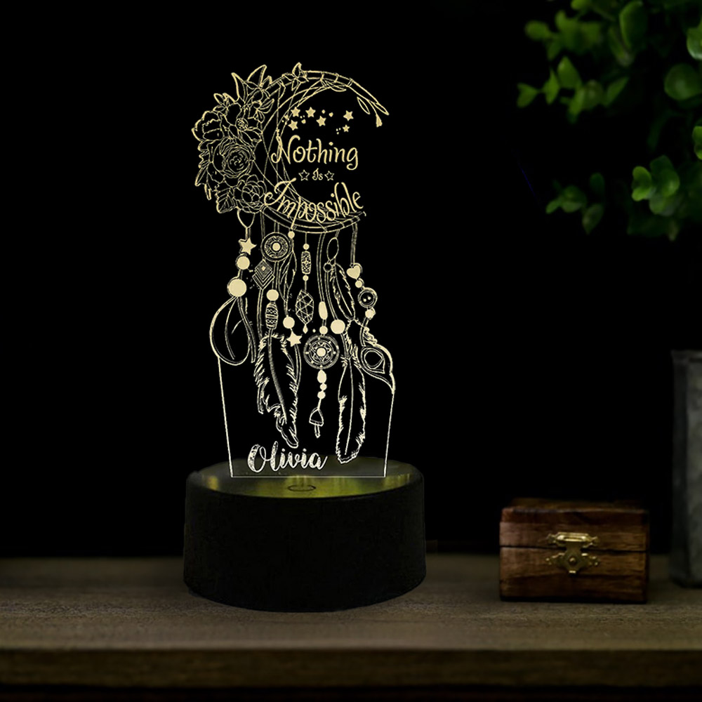 Dream Catcher Night Light Personalized Name LED Lamp "Nothing Is Impossible"