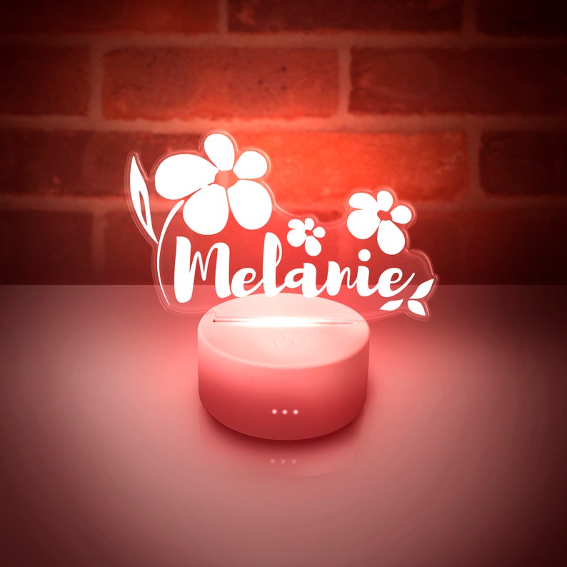 Personalized Flower Night Light Custom Name Changeable Color Lamp