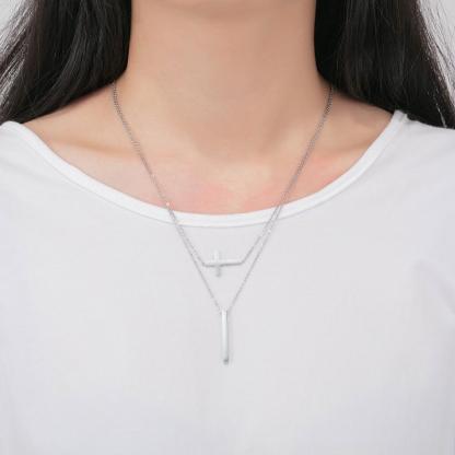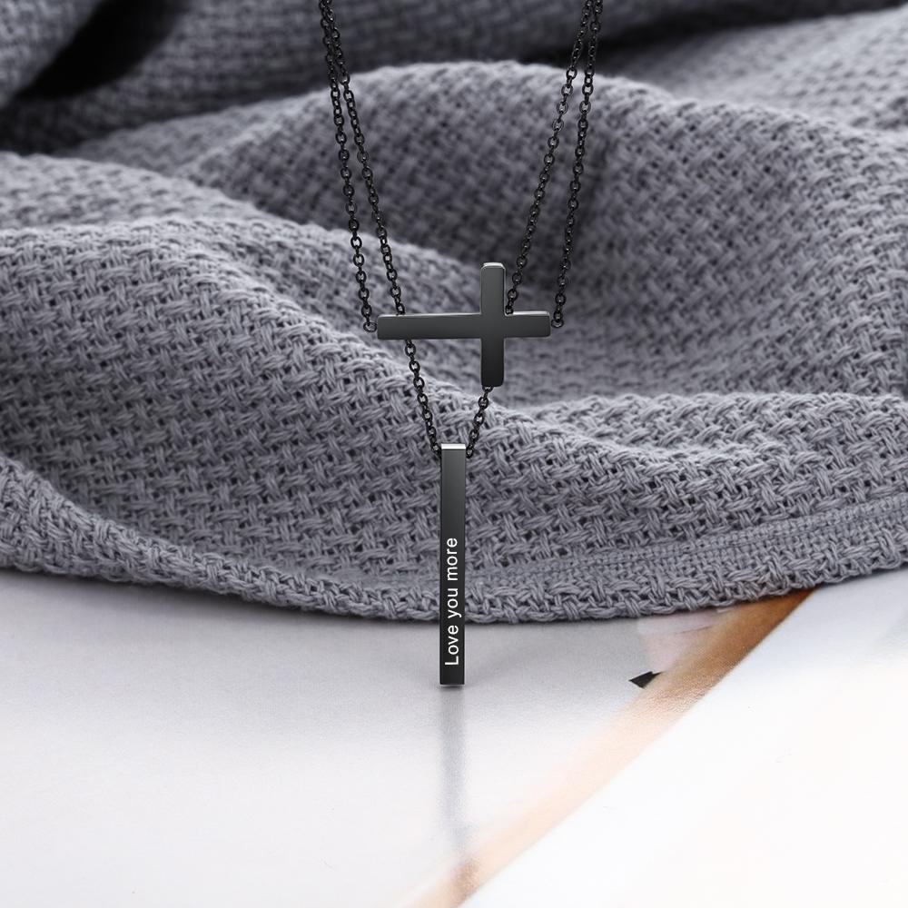 Vertical Bar Necklace with Cross Pendant Layer Necklace Personalized Custom Name Necklace Engraving 4 side