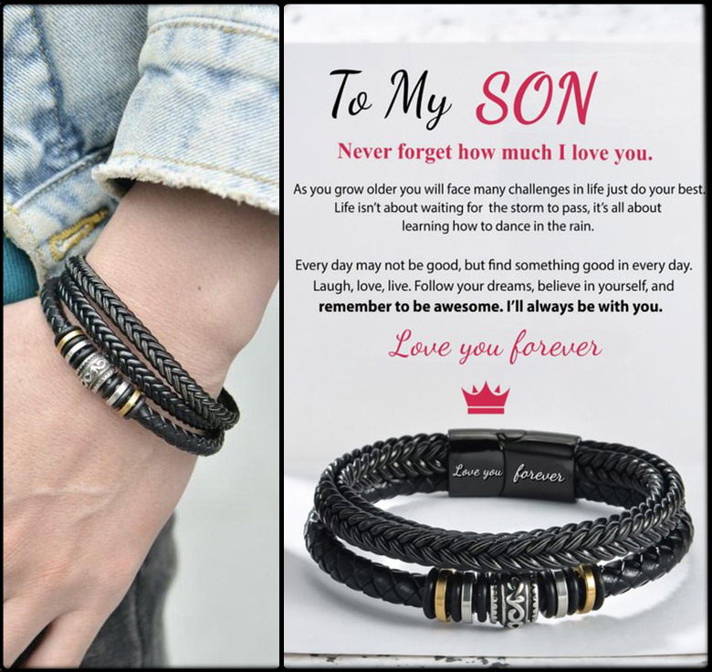To My Son I Will Always Be With You Braided Leather Bracelet- 6.3 Inches