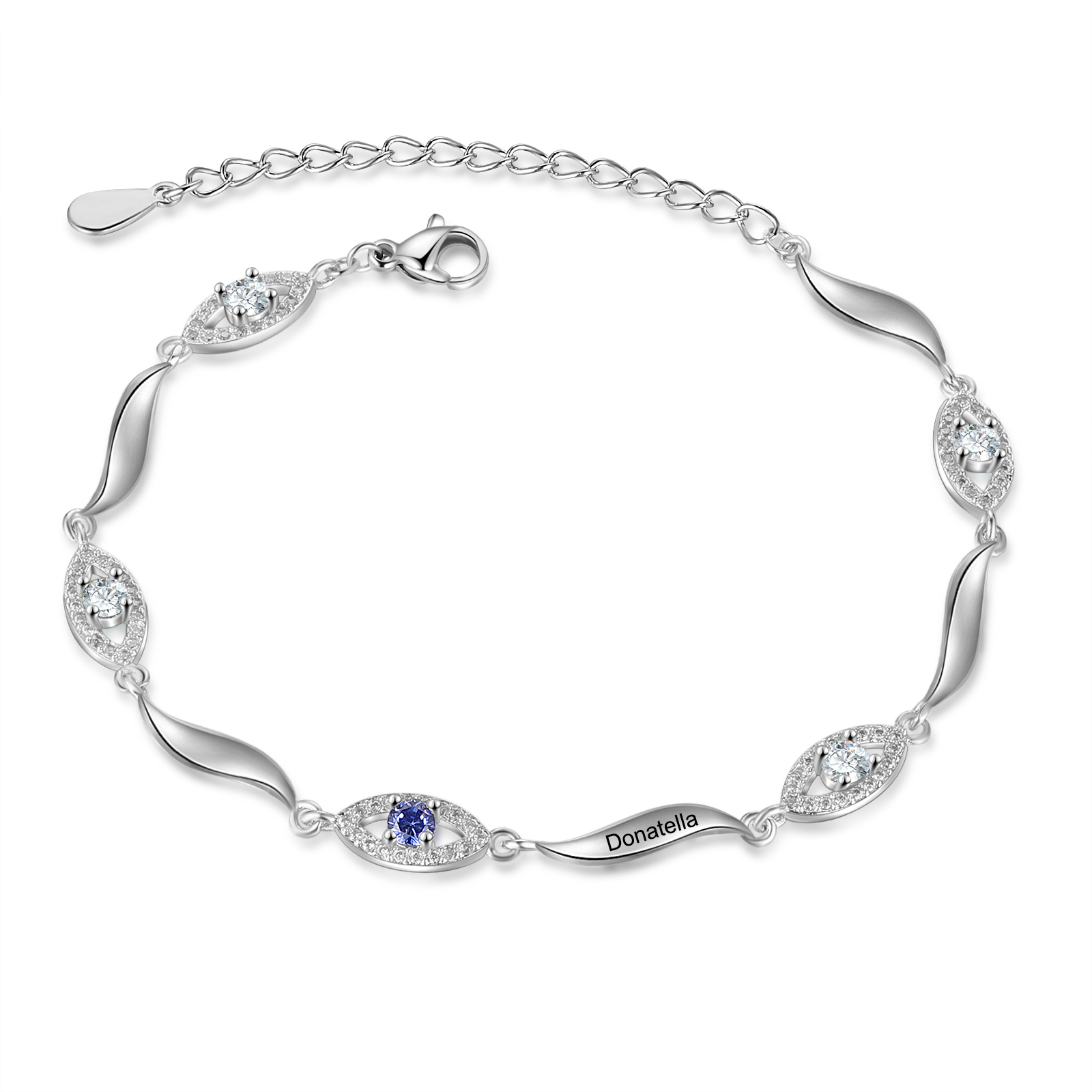 Evil Eye Birthstone Bracelet Custom 1 Name Dainty Bracelet for Her