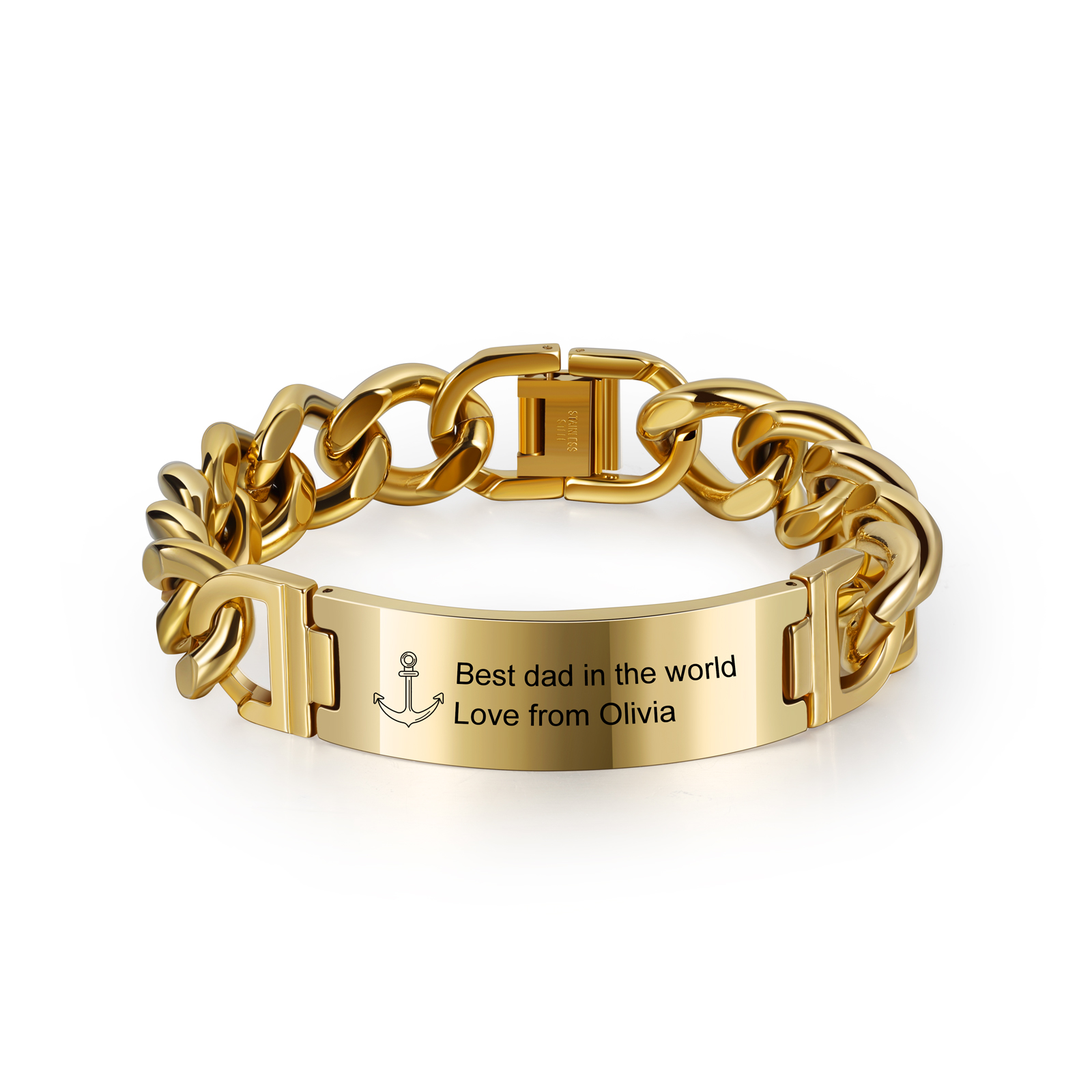 Personalized Cuban Chain Anchor Bracelet Engraved Text Stainless Steel ID Bar Bracelet