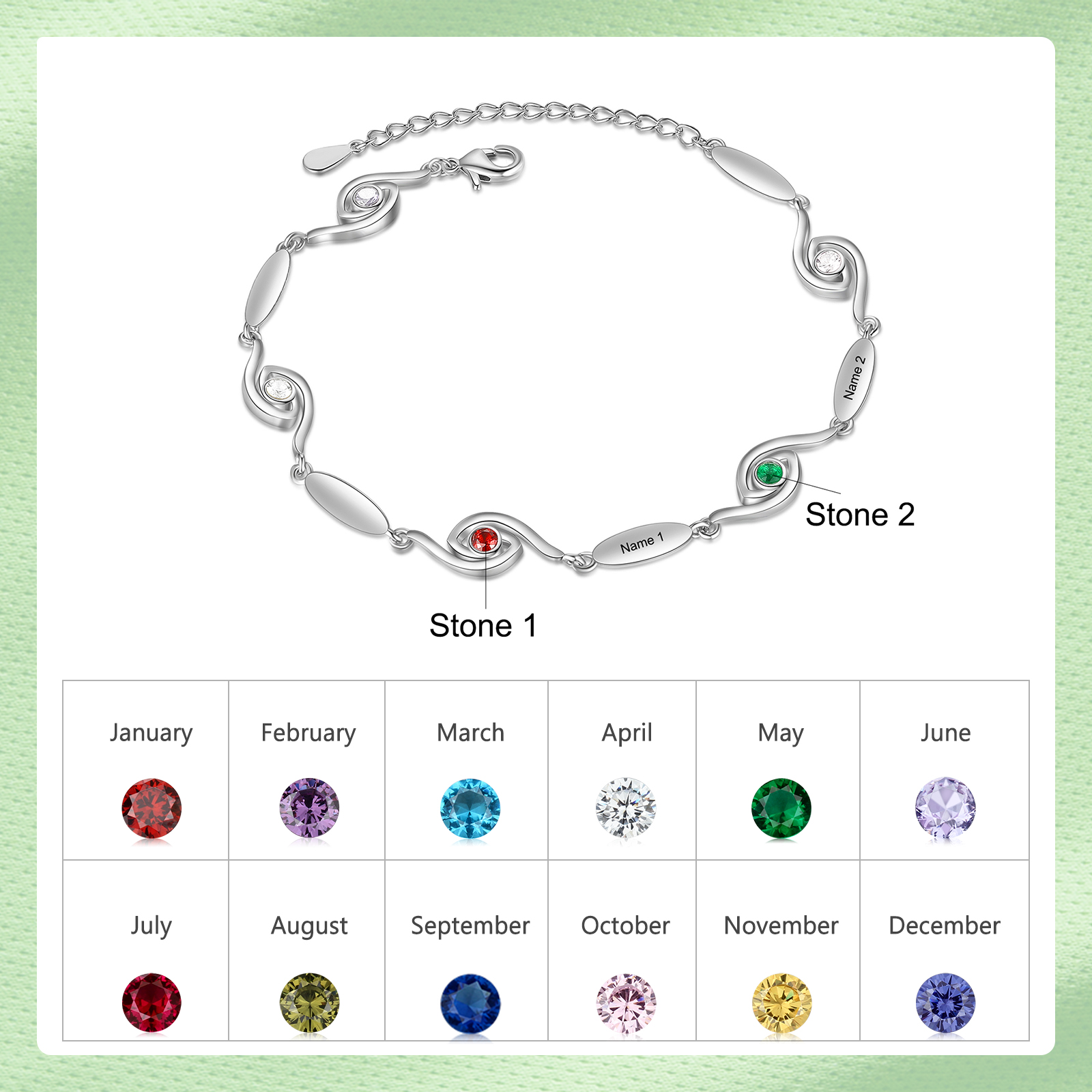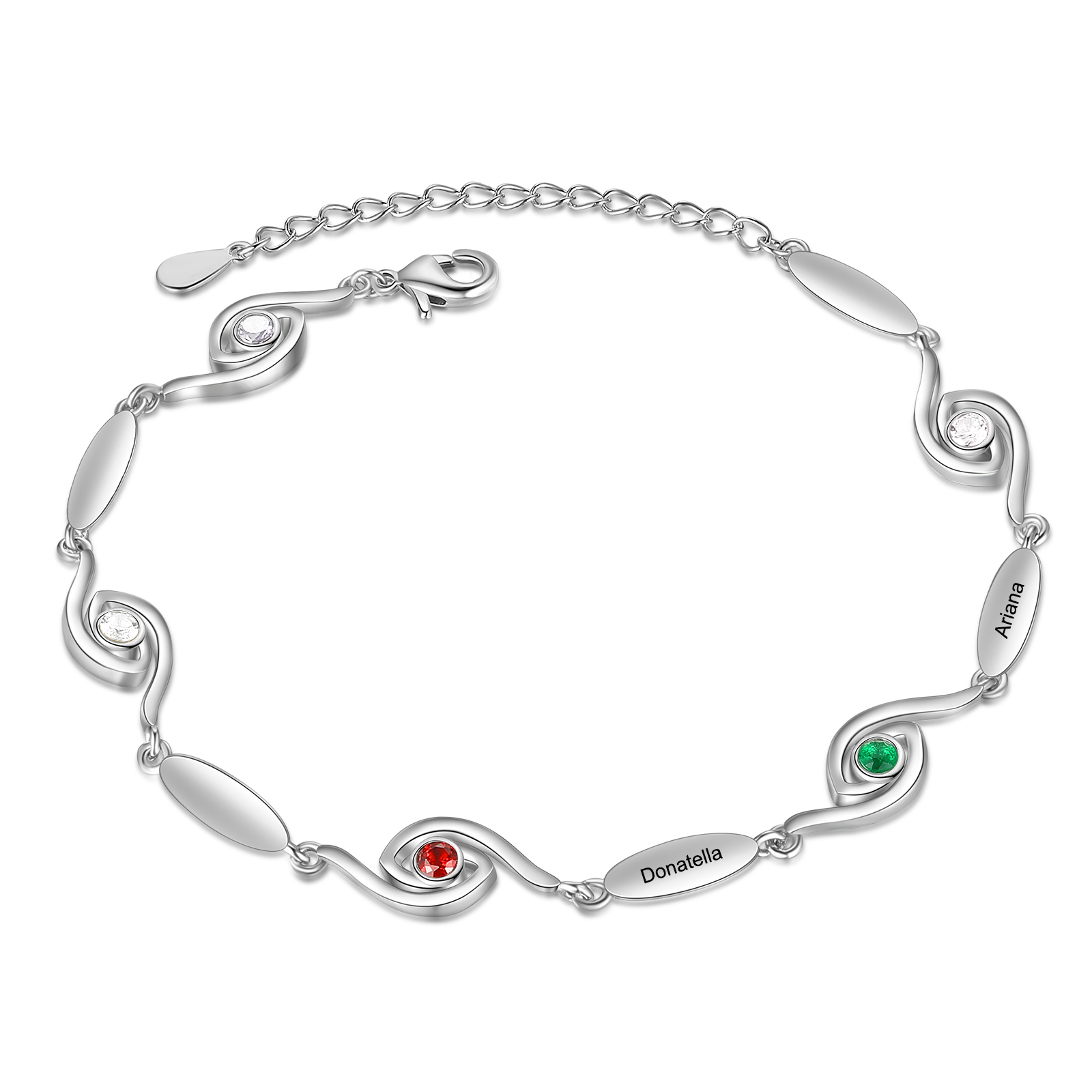 Personalized Evil Eye Bracelet with 2 Birthstones Engraved 2 Names Women Bracelet