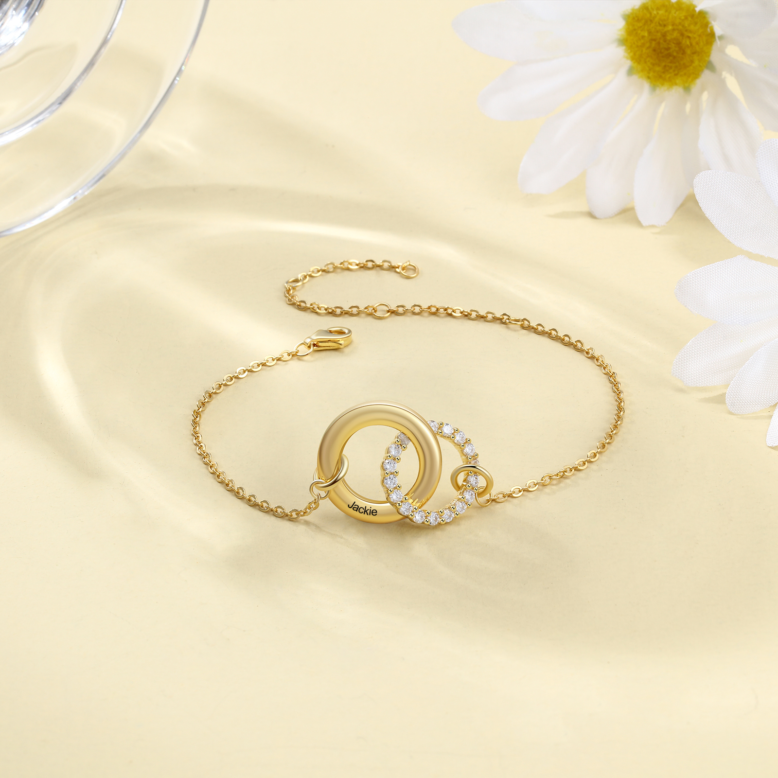 Interlocking Circles Bracelet in Gold with Diamond Custom Name for Her