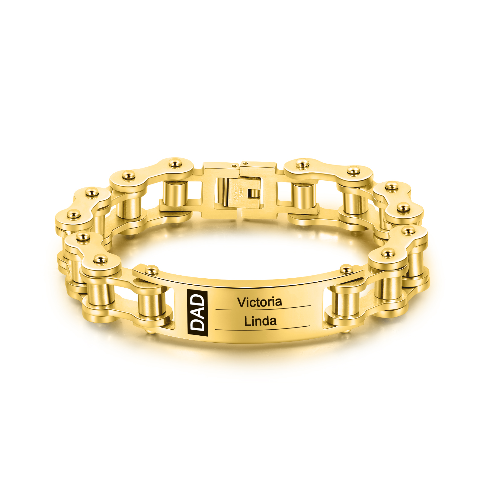 Personalized Motorcycle Biker Chain Bracelet Engraved 2 Names Mens ID Bar Bracelet
