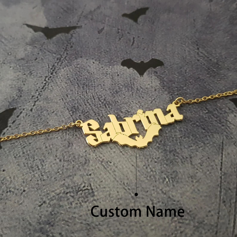 Halloween Name Necklace Personalized Bat Name Necklace for Her