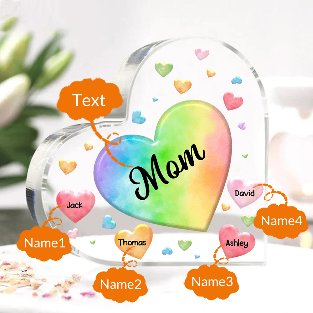4 Names - Personalized Acrylic Heart Keepsake Custom Text Colorful Hearts Ornament Gift for Mother/Grandma