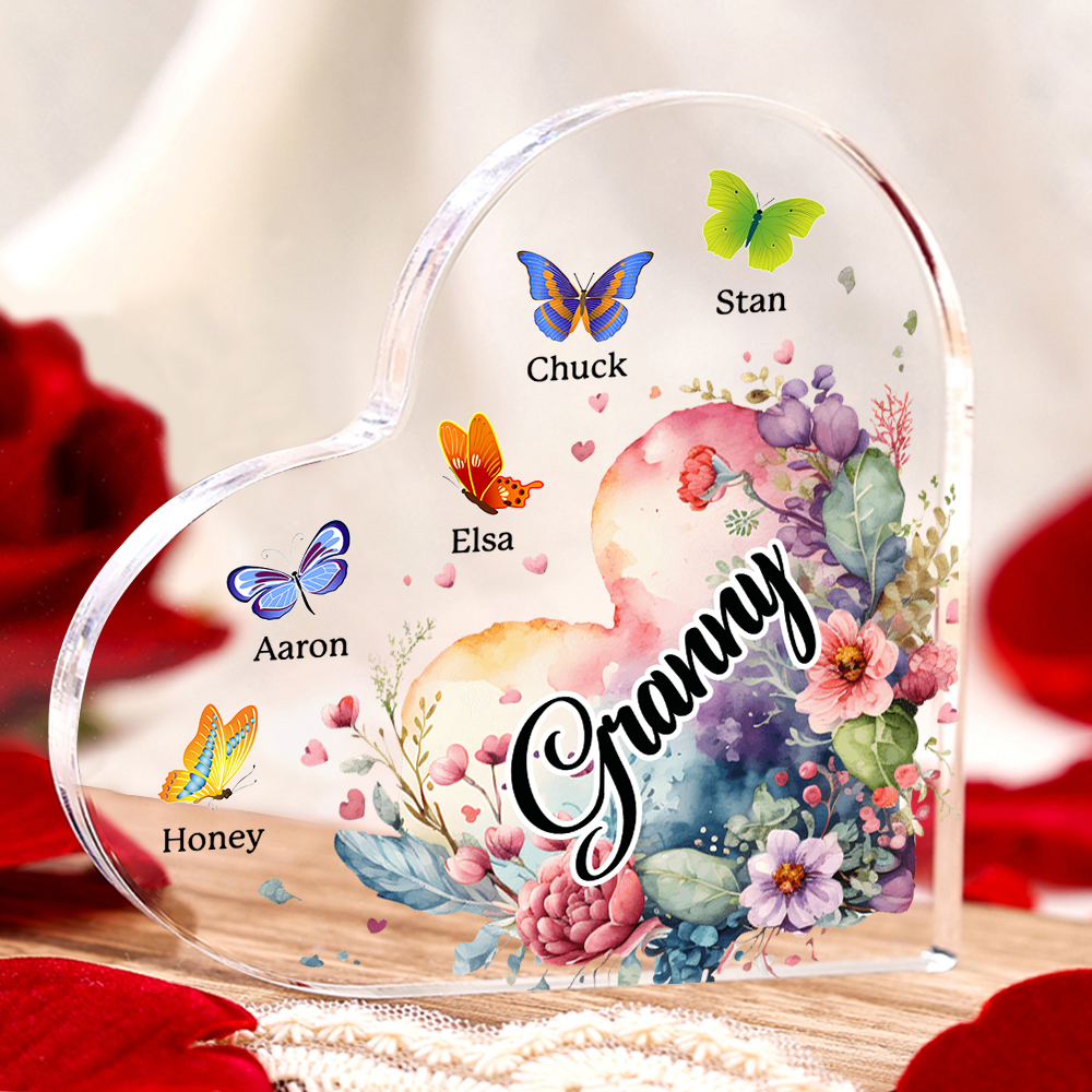 Personalized Acrylic Heart Keepsake Custom 6 Names Flowers Ornament Gifts for Mom/Grandma
