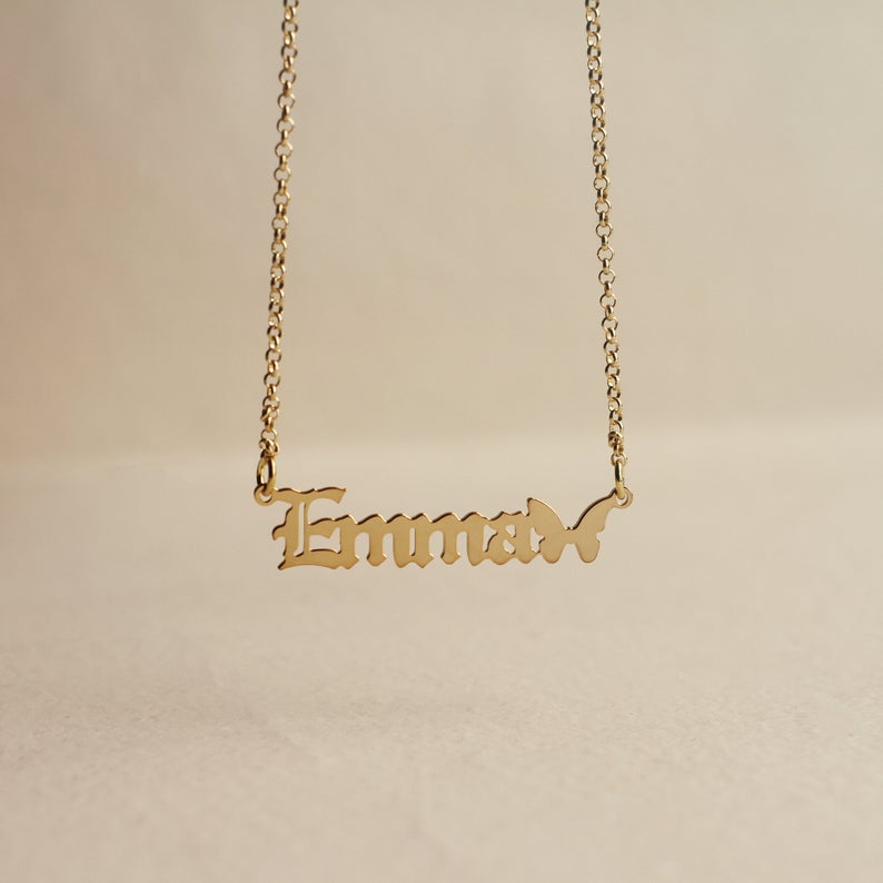 Personalized Butterfly Name Necklace Custom Name Old English Necklace for Her