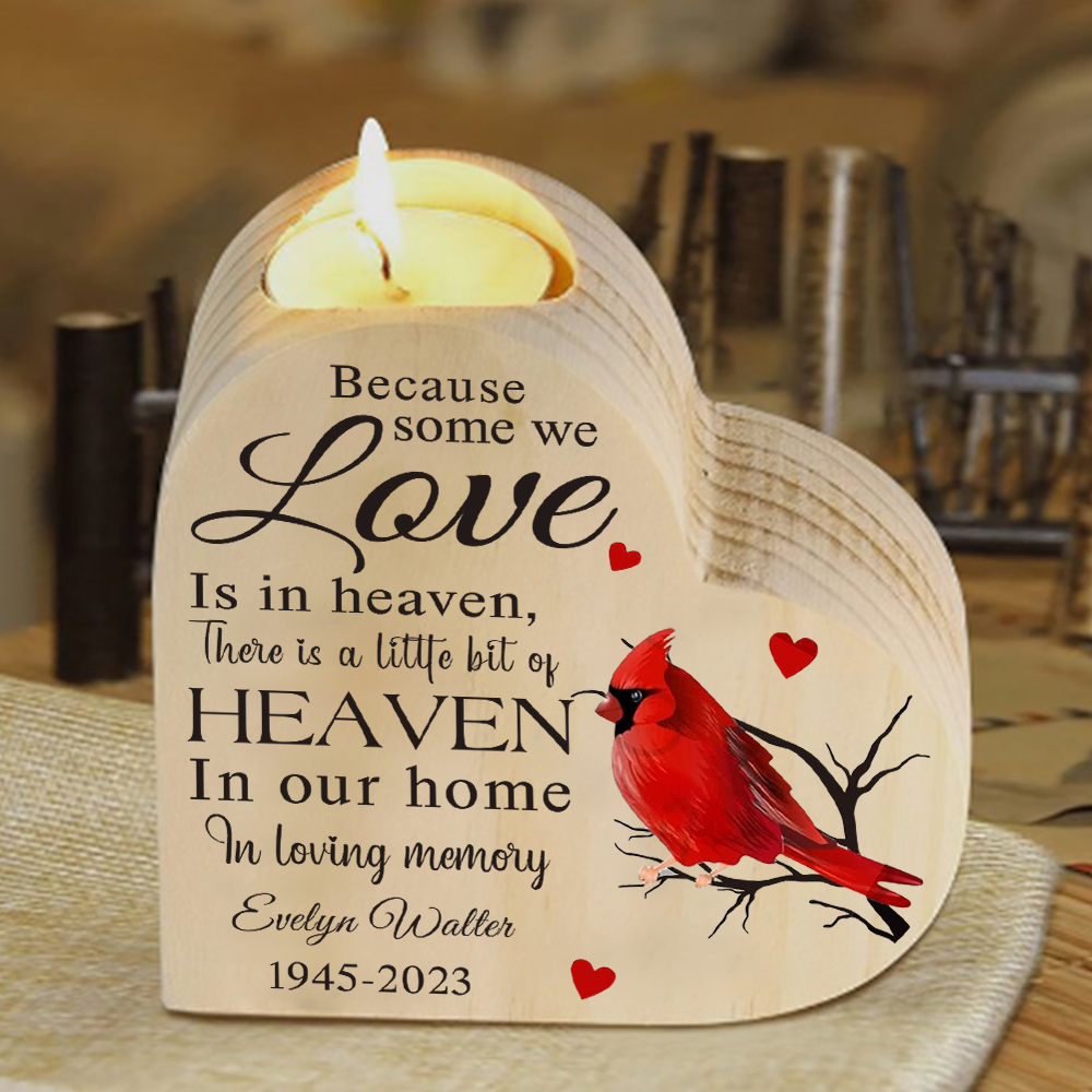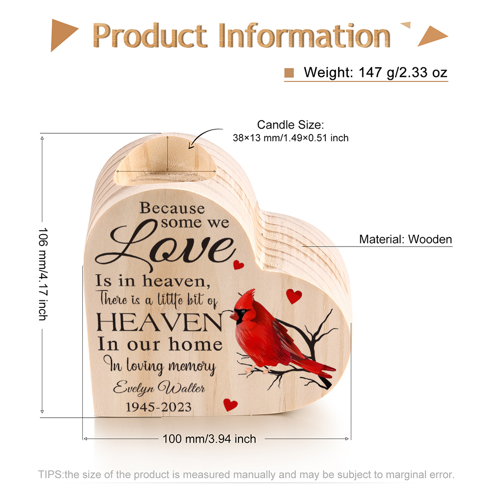 Personalized Wooden Candle Holder Heart-shaped Memorial Candlesticks Customized Name Cardinal Candle Holder
