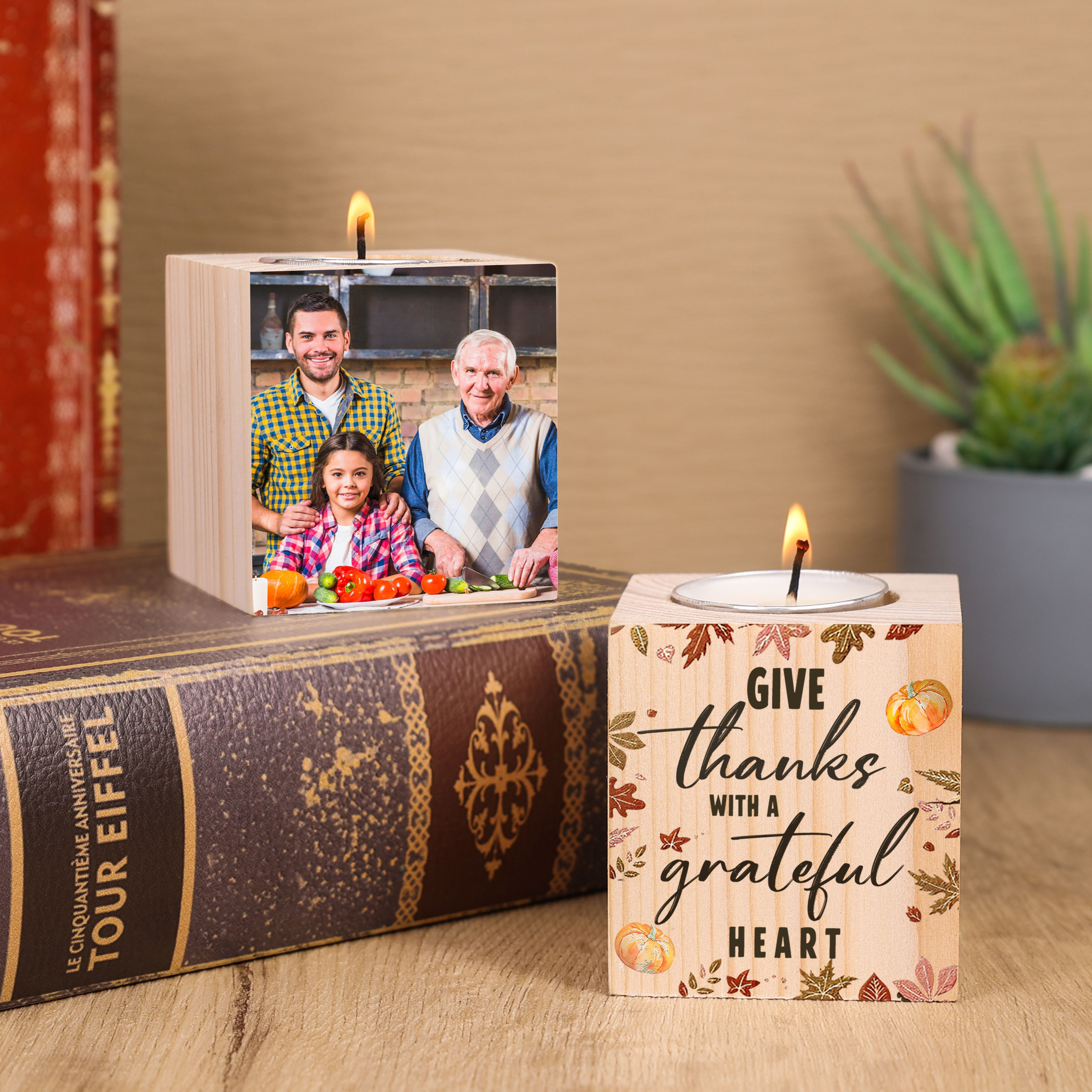 Thanksgiving Wooden Candle Holder Customized Photo Candlesticks Thanksgiving Gifts for Family Friends