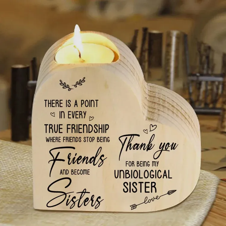 To My Sister Heart Candle Holder Thank You for Being My Unbiological Sister Wooden Candlestick