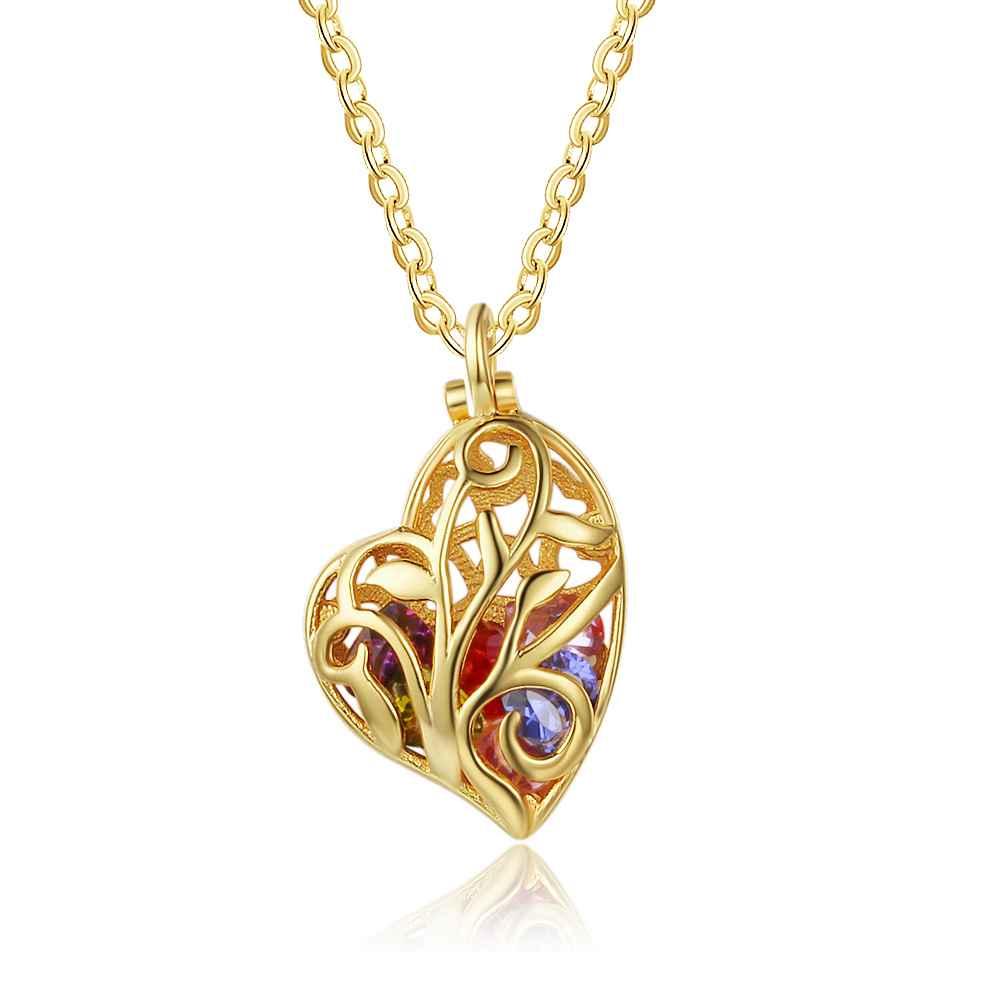 Heart Cage Family Tree Necklace with Birthstones Personalized Mother Necklace