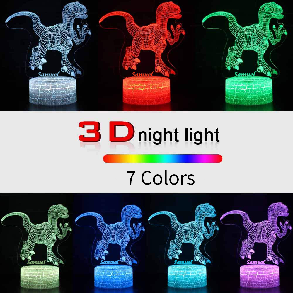 Personalized Jurassic Dinosaur 3D Night Light Changeable Color Lamp for Kids