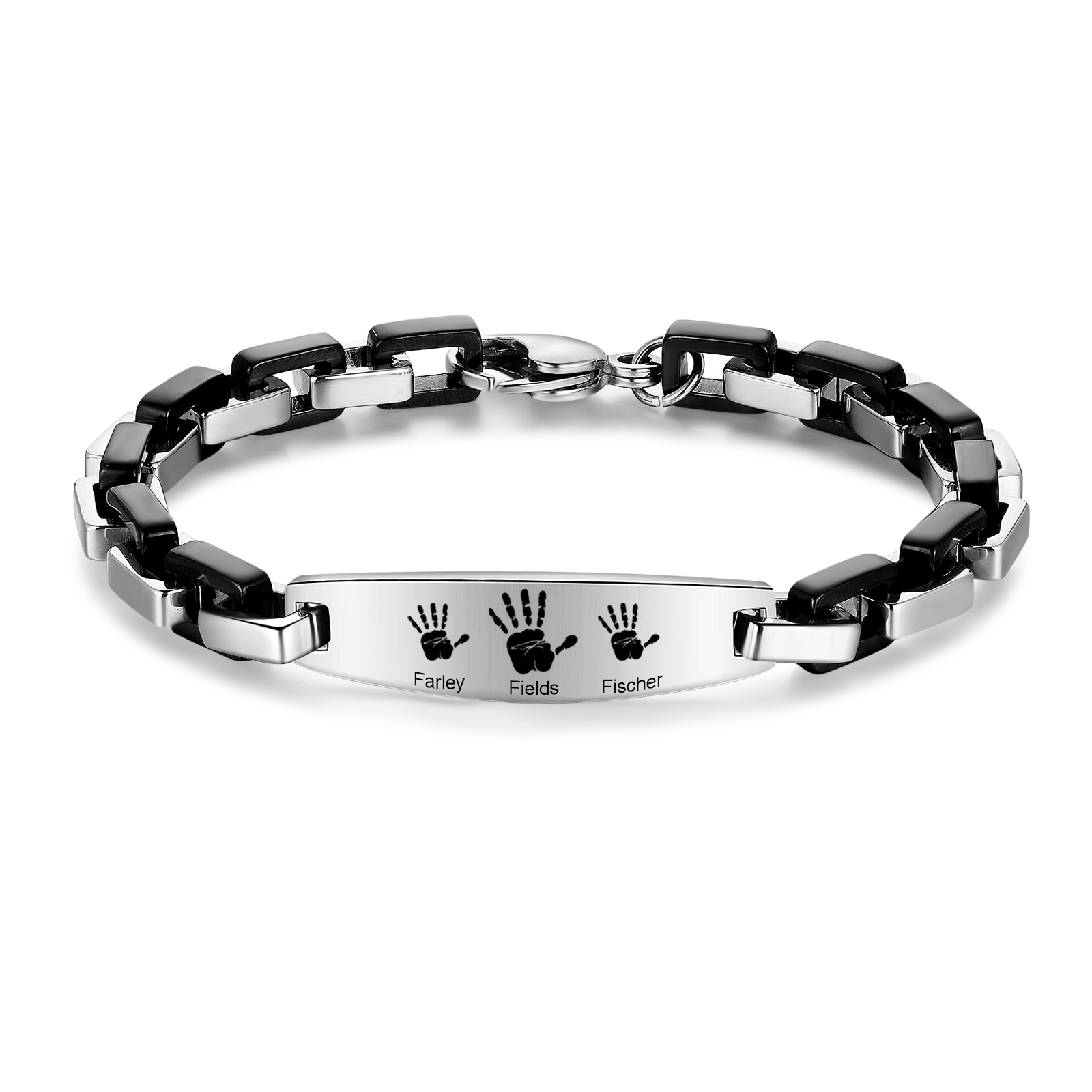 Personalized Cuban Chain Bracelet with 3 Handprints Custom Mens Bracelet Black
