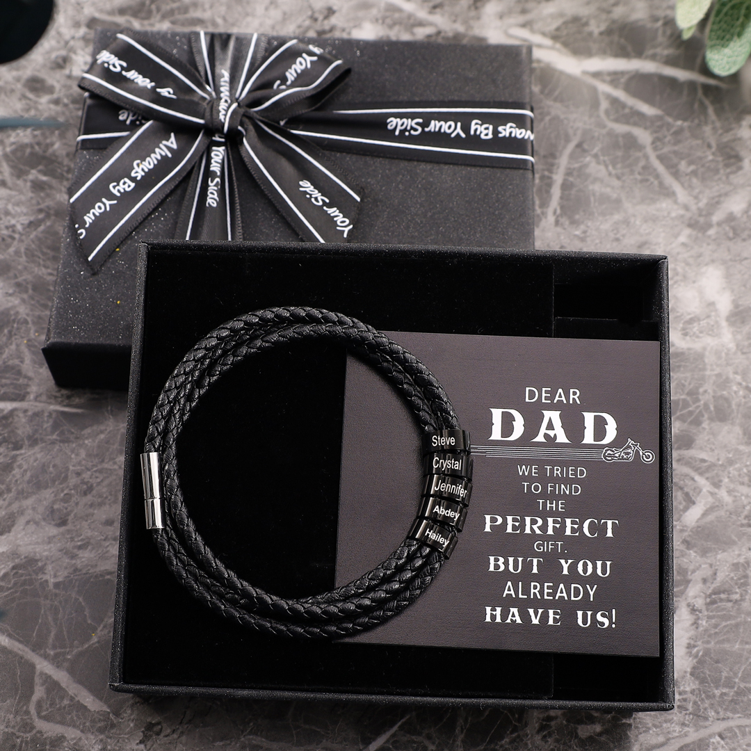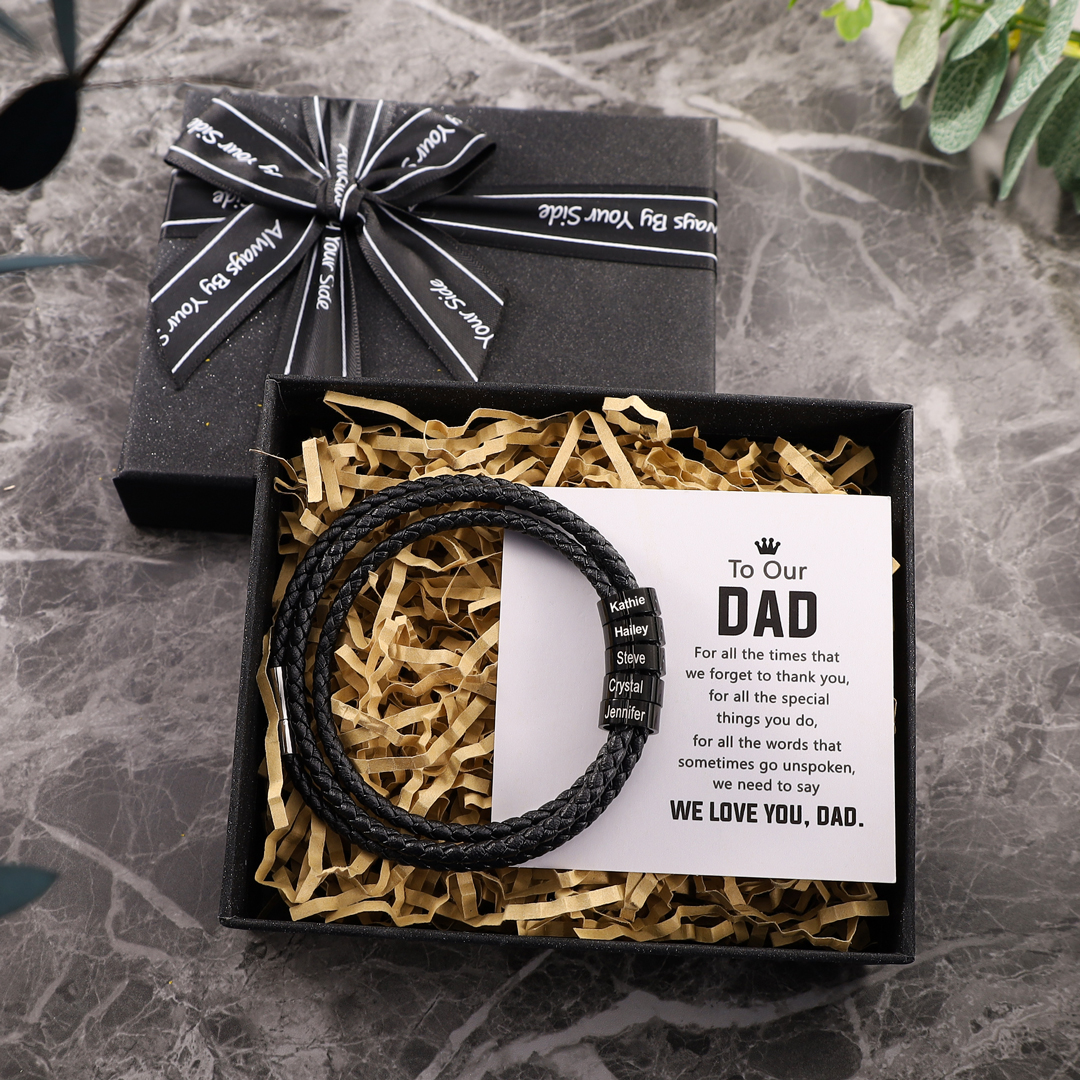 Personalized Men's Leather Bracelet Custom 5 Names Beads Bracelet Father's Day Gifts for Him