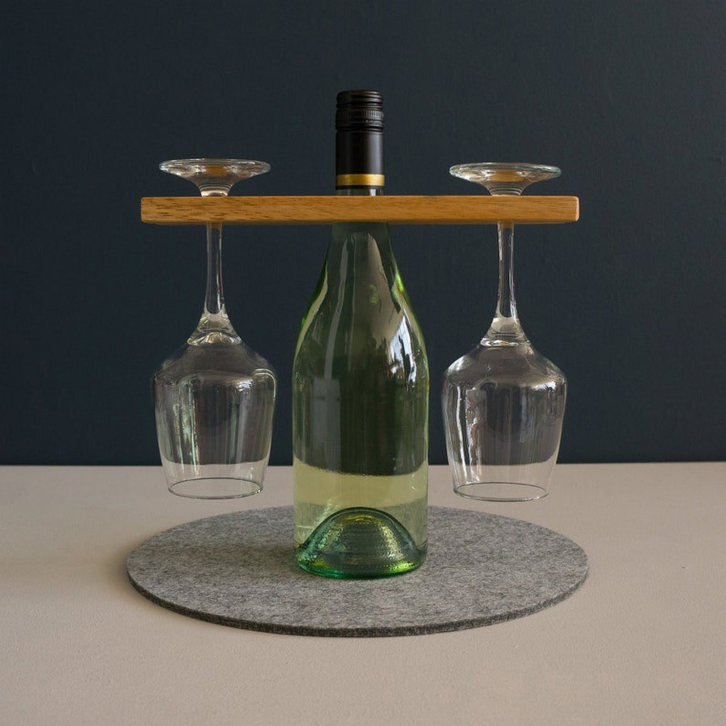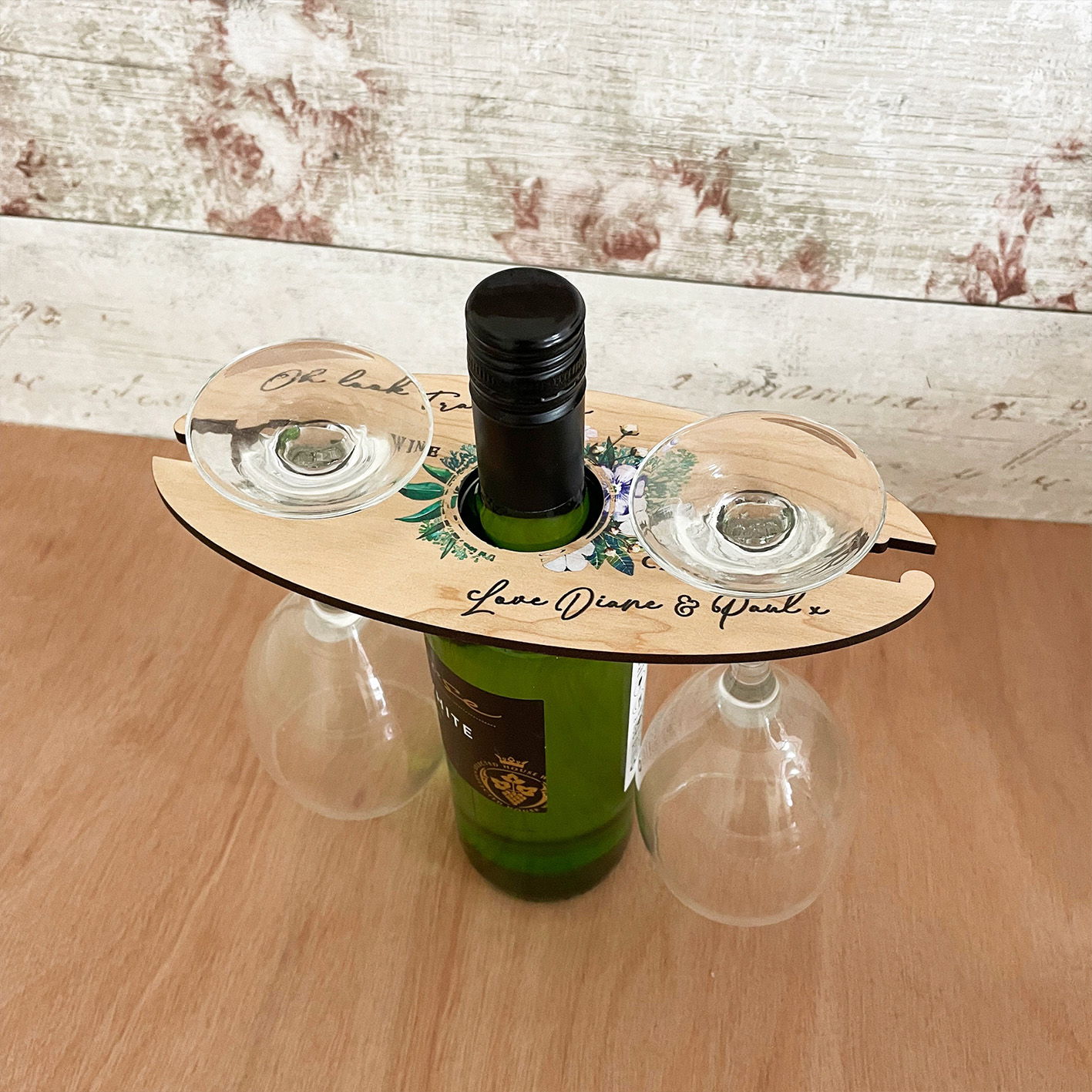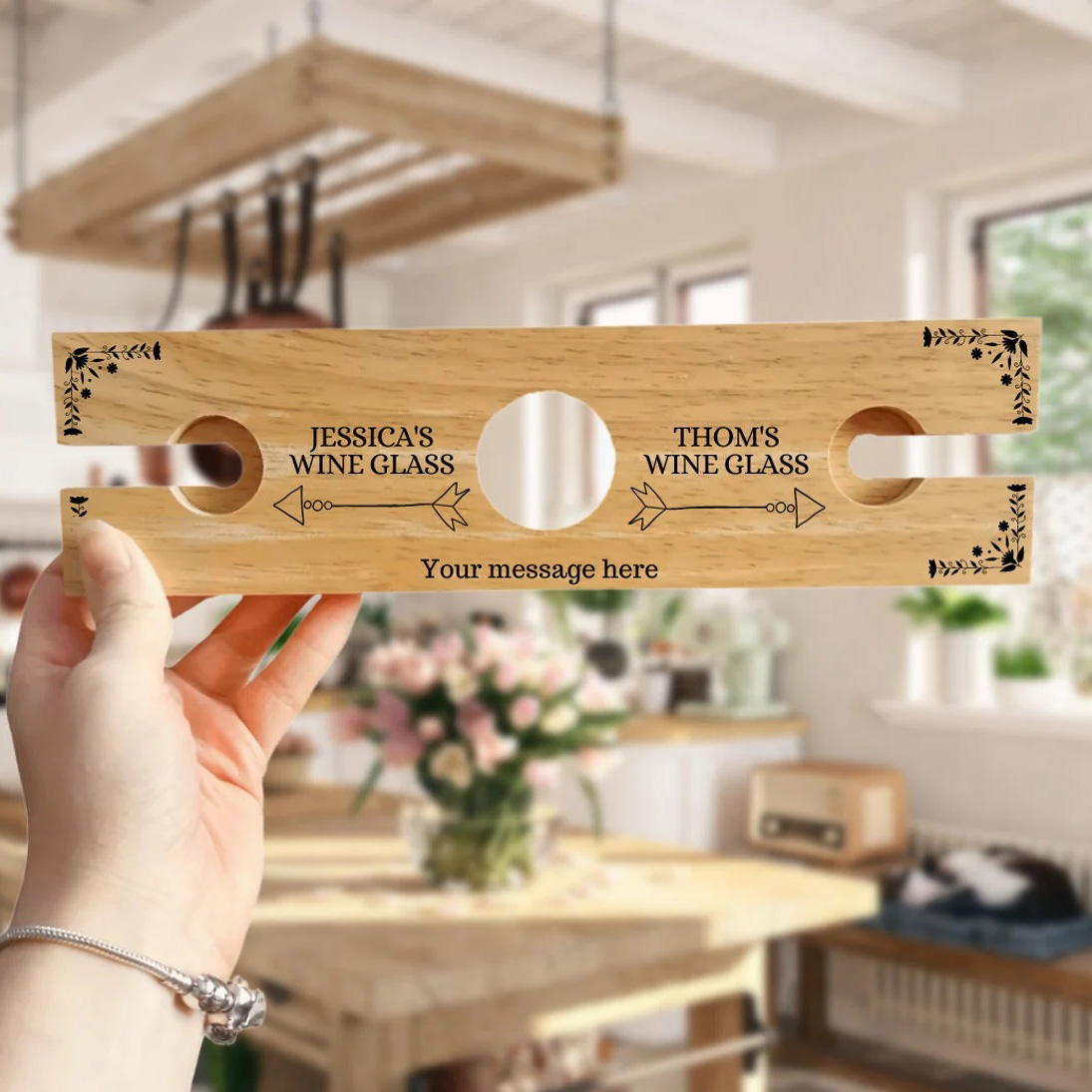 Personalized Wooden Wine Glass Holder Couple Wine Butler