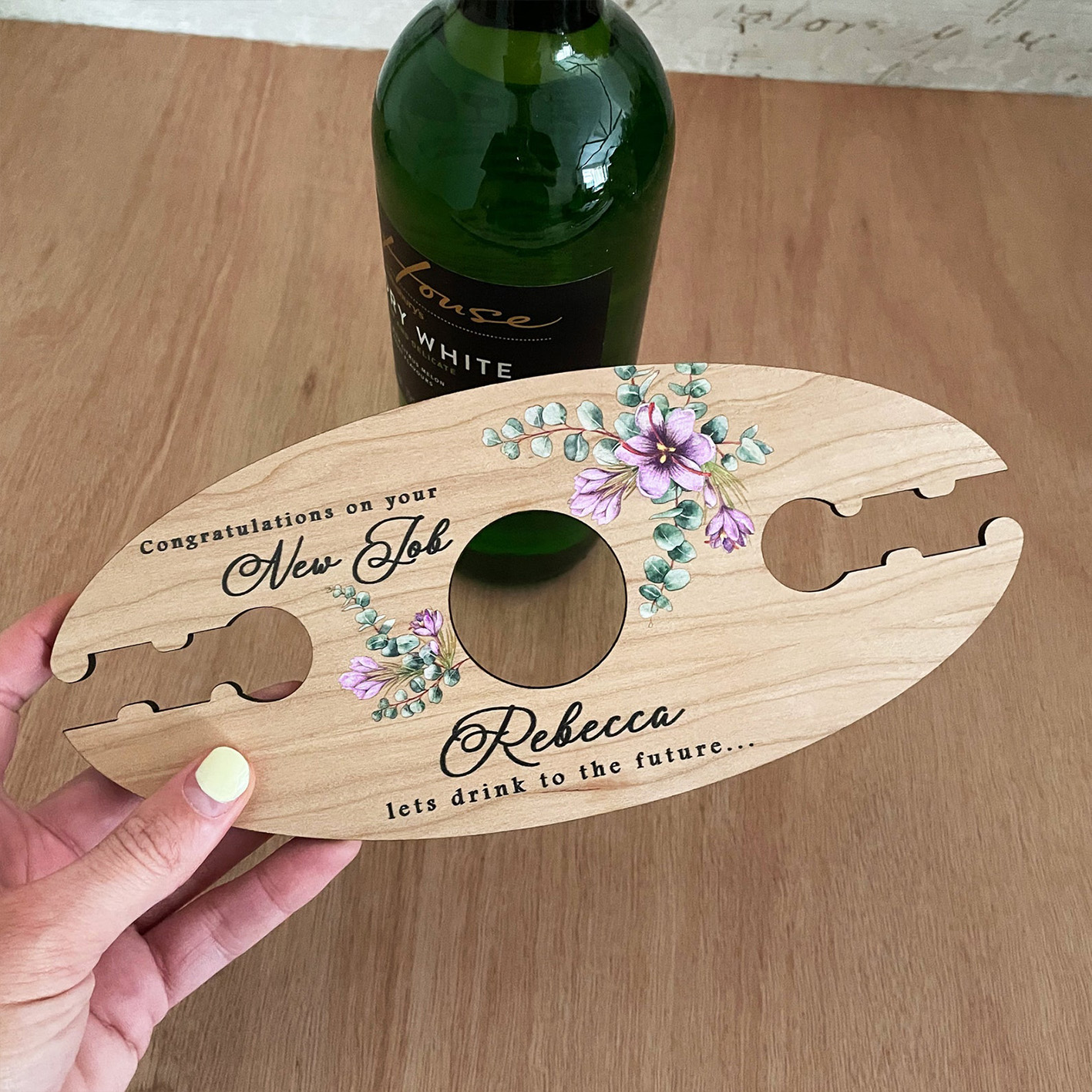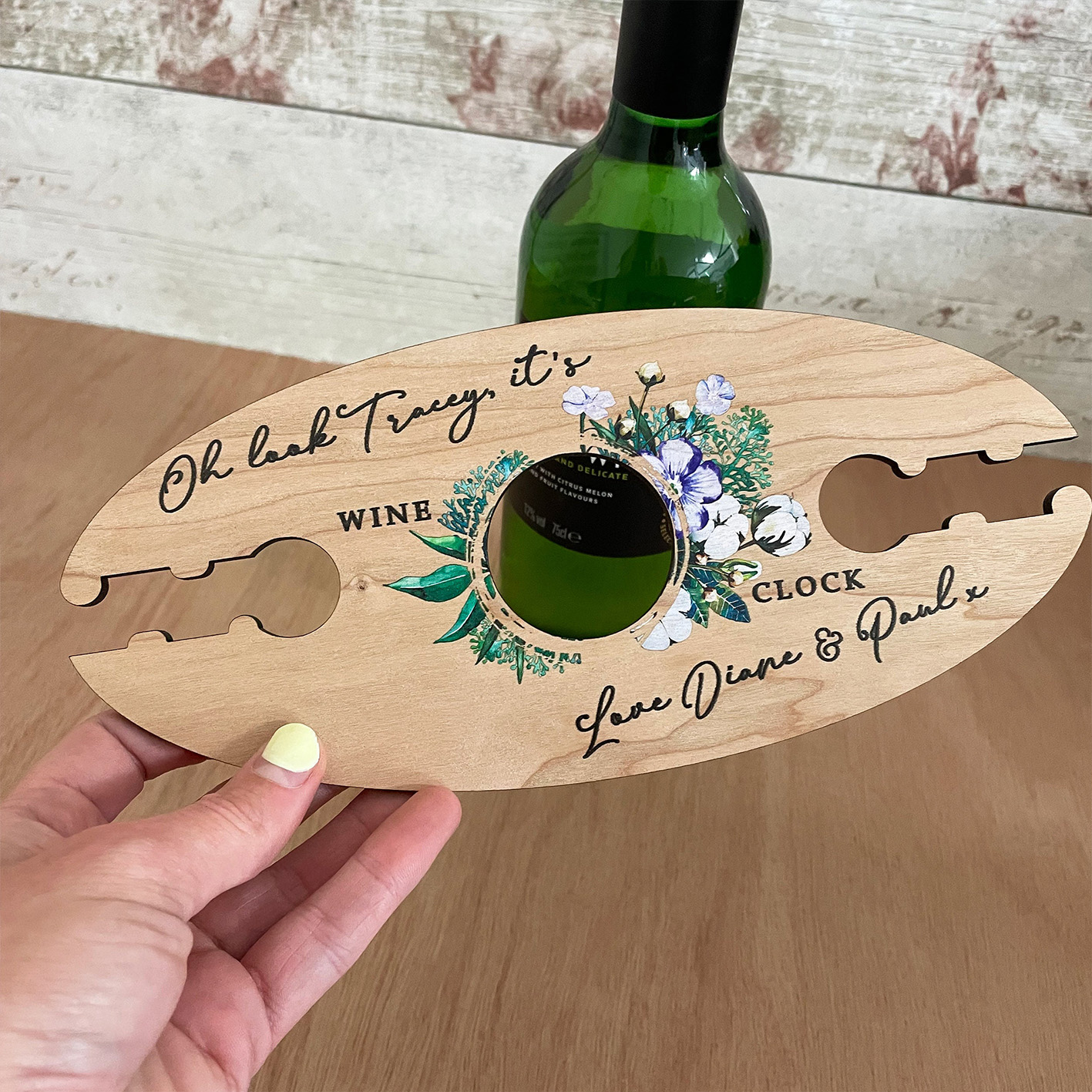 Personalized Wooden Wine Caddy with Name and Date Drinks Server Gift