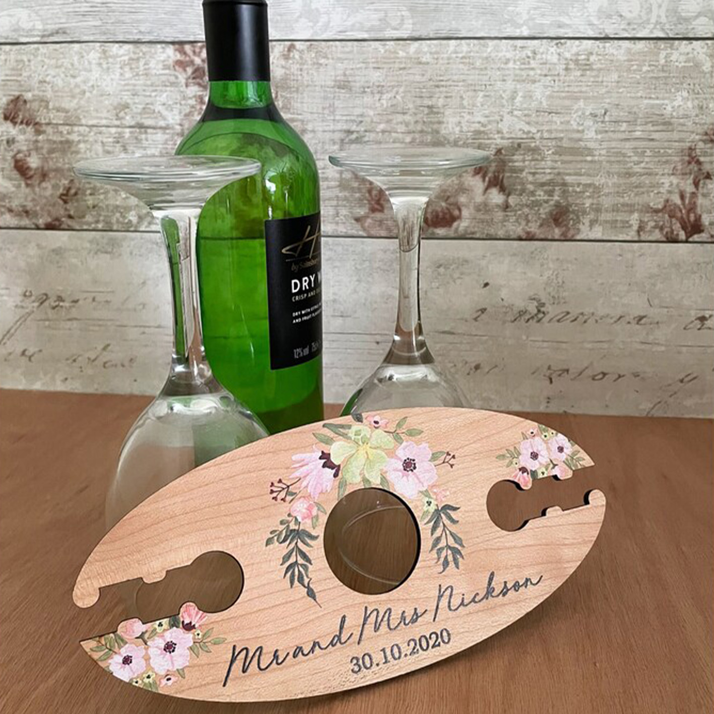 Personalized Wooden Wine Glass Holder Wine Caddy Wedding Decor