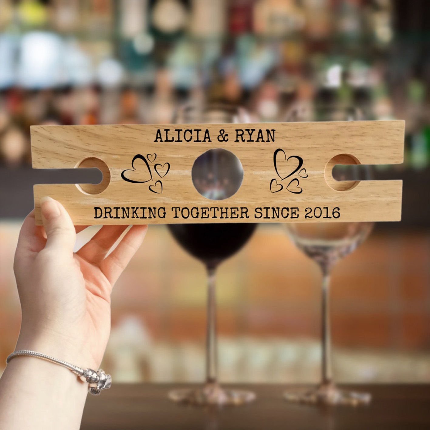 Personalized Wooden Wine Glass Holder Anniversary Table Decor