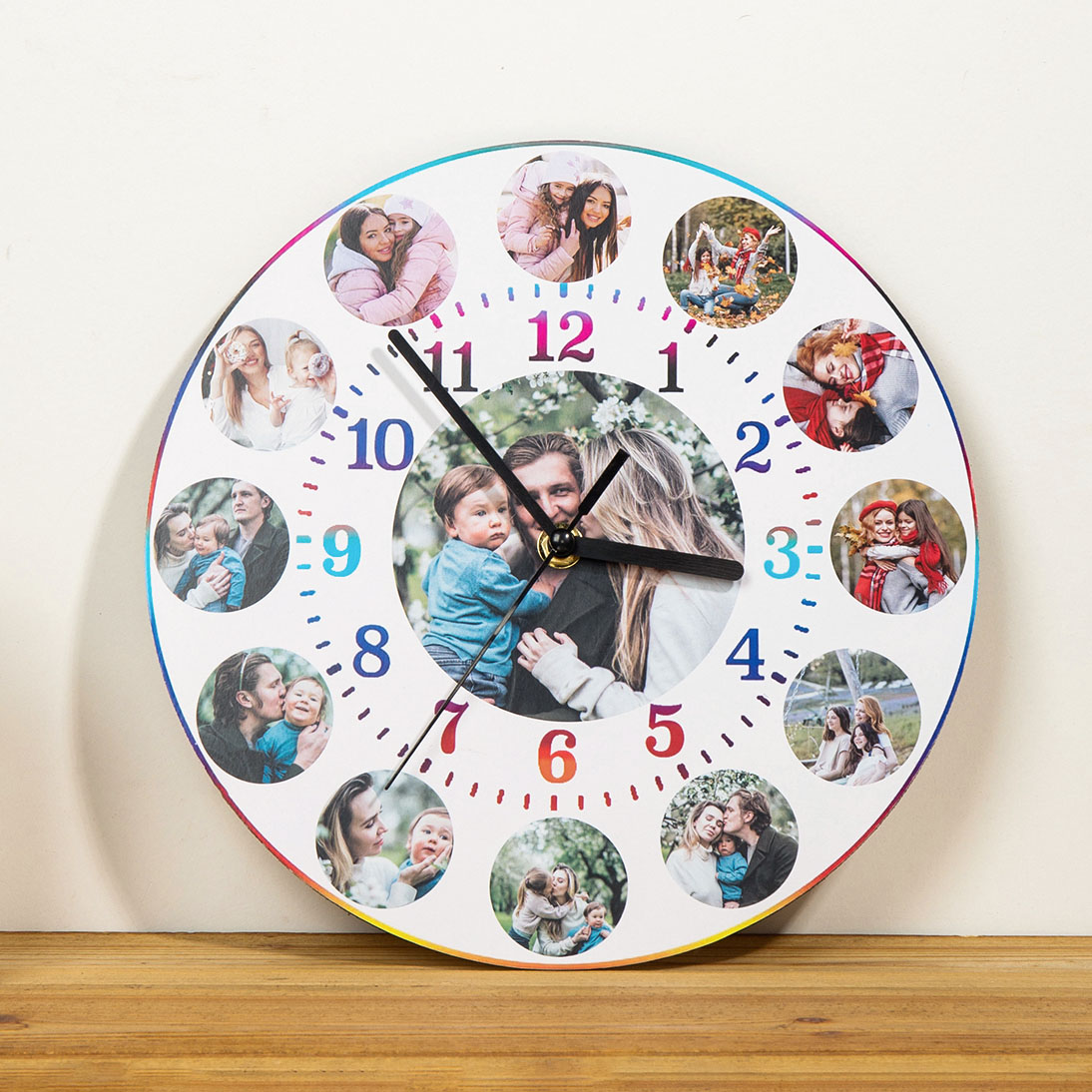 Personalized 12 Photos Family Wall Clock Home Decor Gift