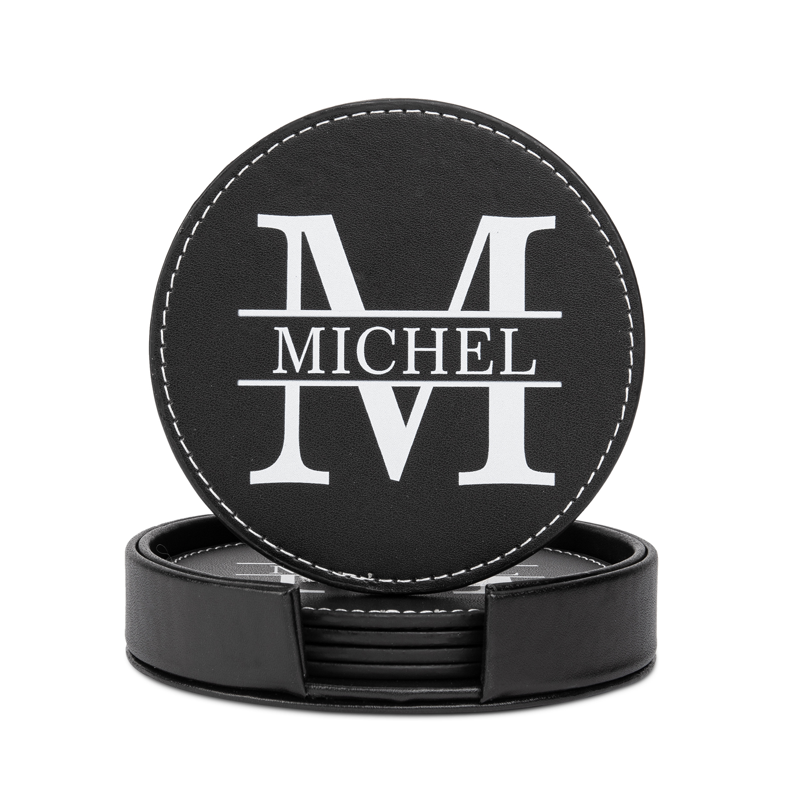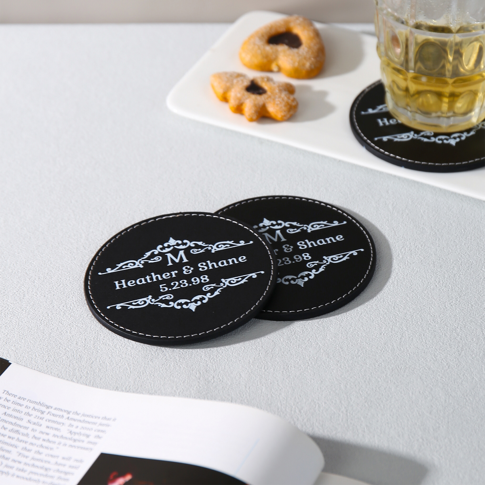 Personalized Round Leather Coasters Set of 5 Monogram Coasters Wedding Gift