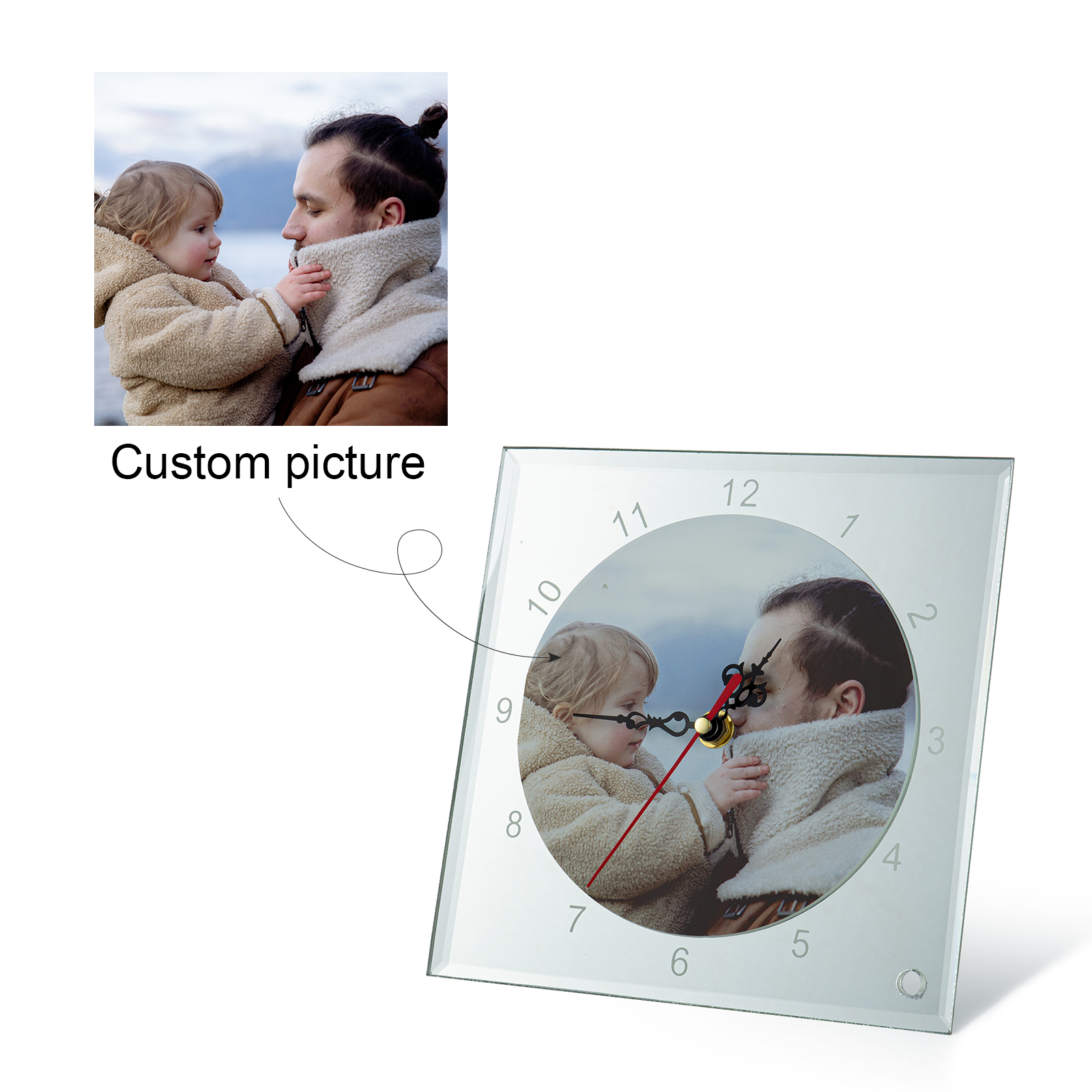 Personalized Mirrored Glass Photo Clock Home Decor Family Gift