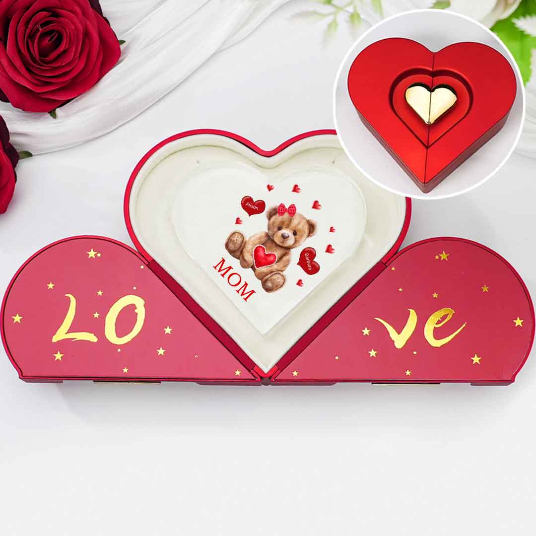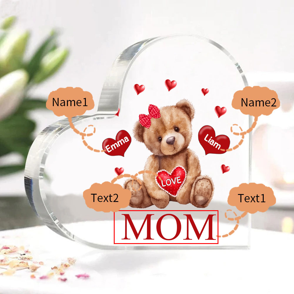 2 Names - Personalized Acrylic Heart Keepsake Custom 2 Texts Teddy Bear Ornaments Gifts for Grandma/Mother