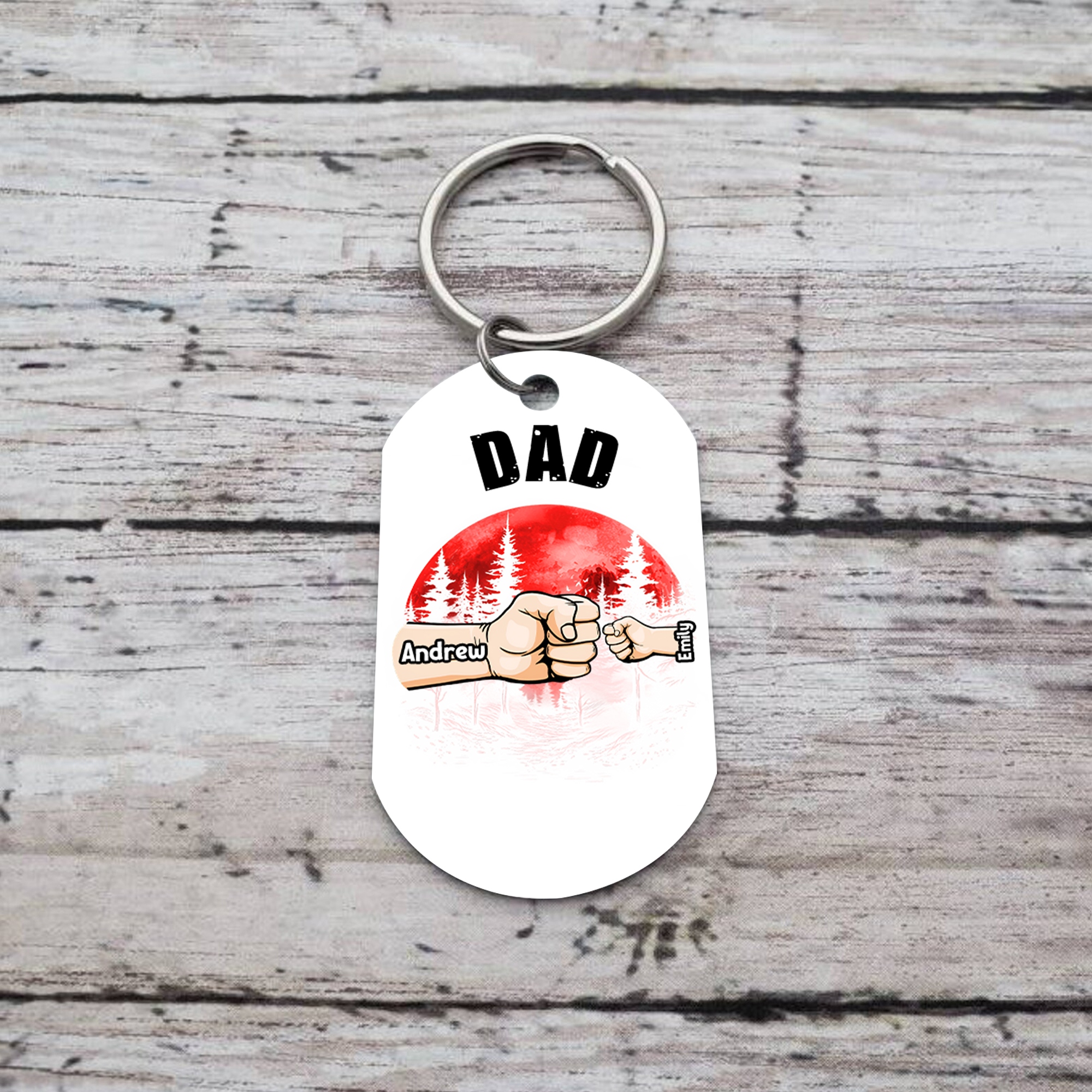 Custom 2 Names & 1 Text Keychain Personalized Fist Bump Keychain Father's Day Gifts for Dad/Grandpa