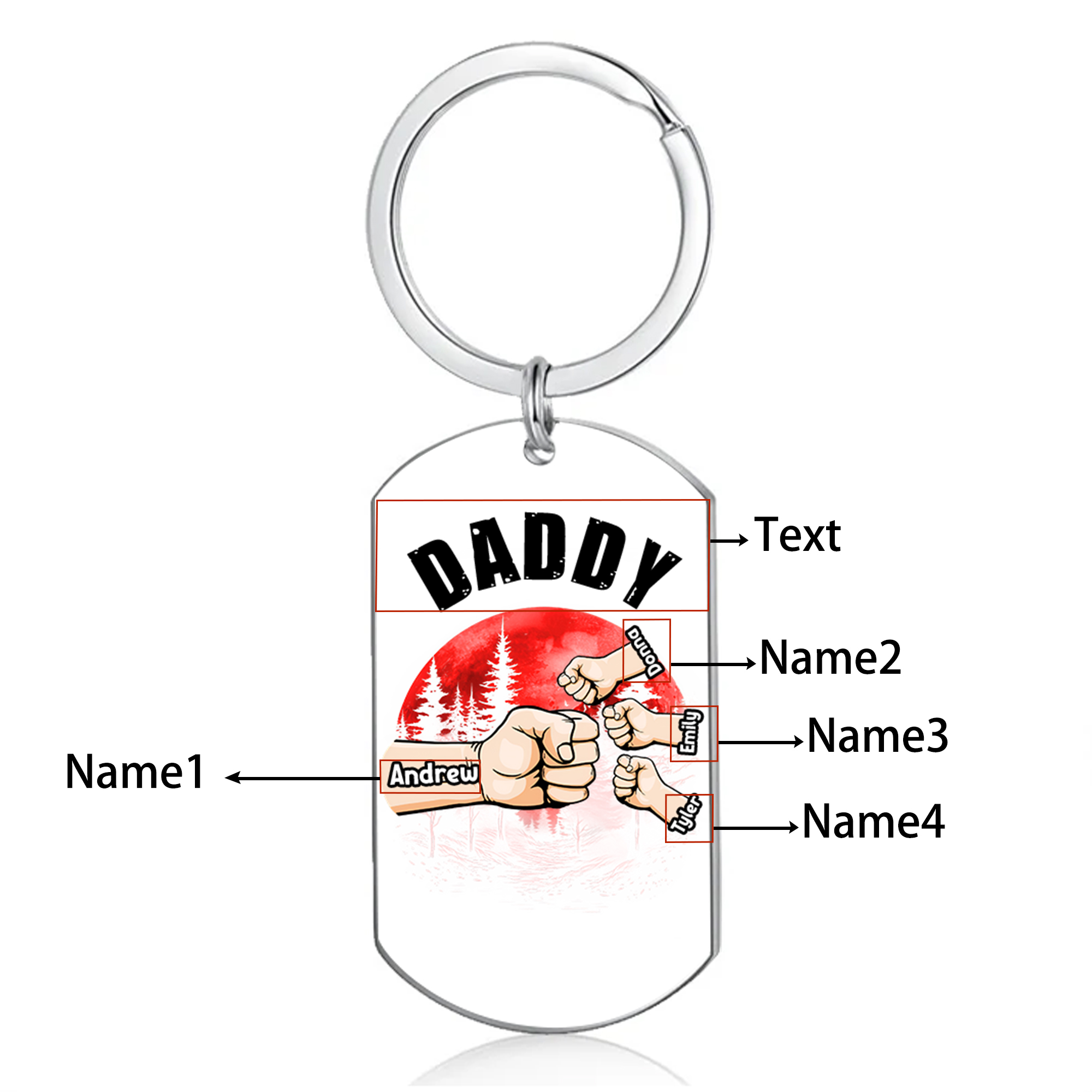 😊 Customize this keychain with the names of your loved ones, making it a unique gift for Dad/Grandpa.