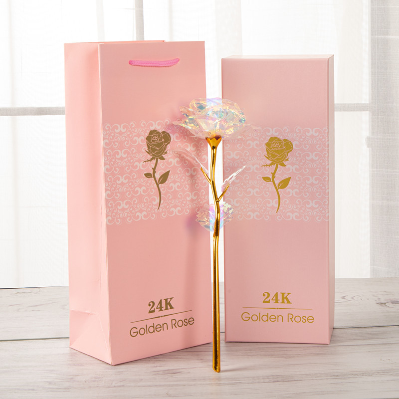 Galaxy Colorful Rose Golden Foil Artificial Flowers with Gift Box Romantic Gift