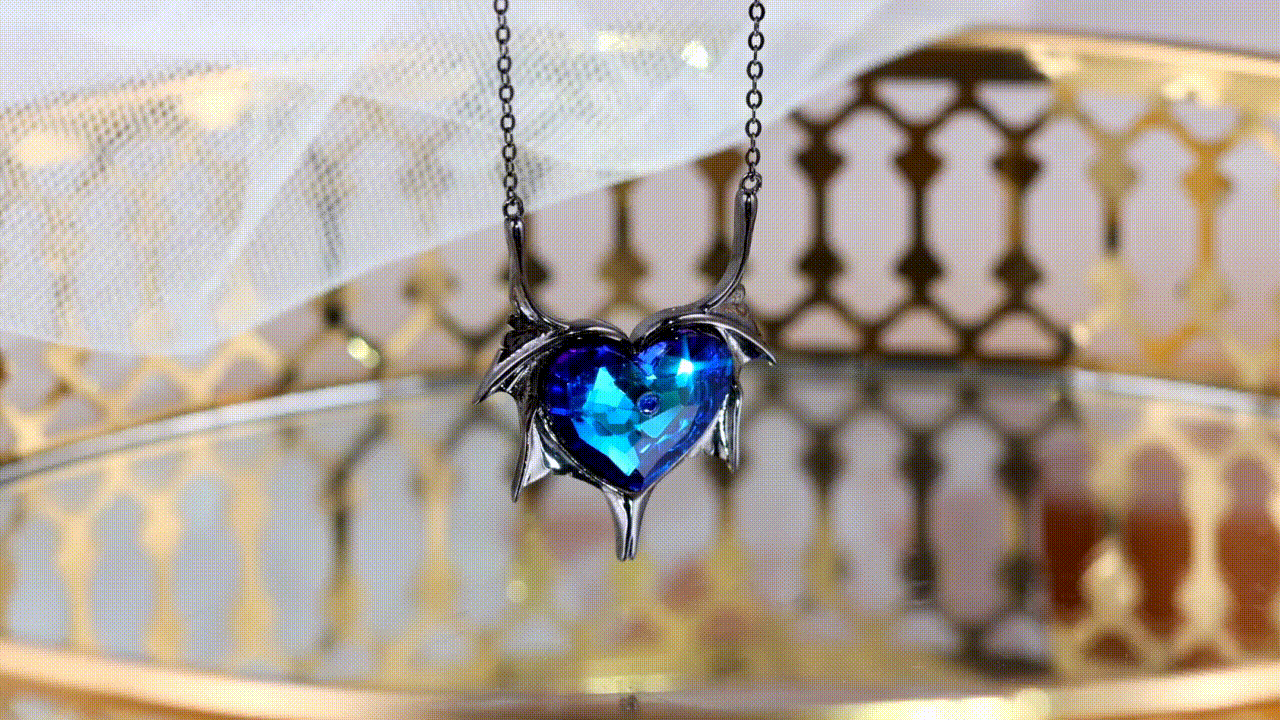 Heart Blue Crystal Necklace Bat Wings Sapphire Necklace for Her
