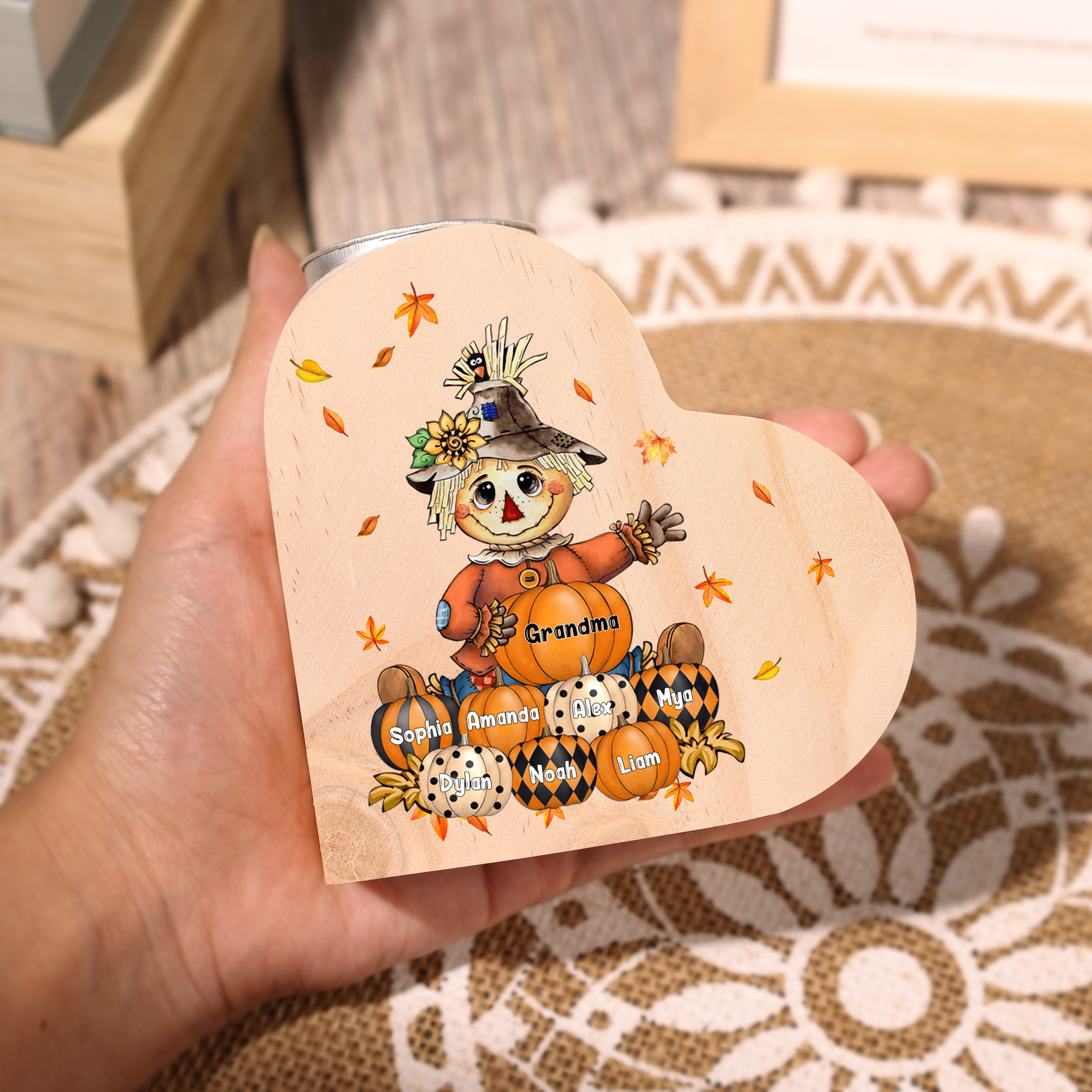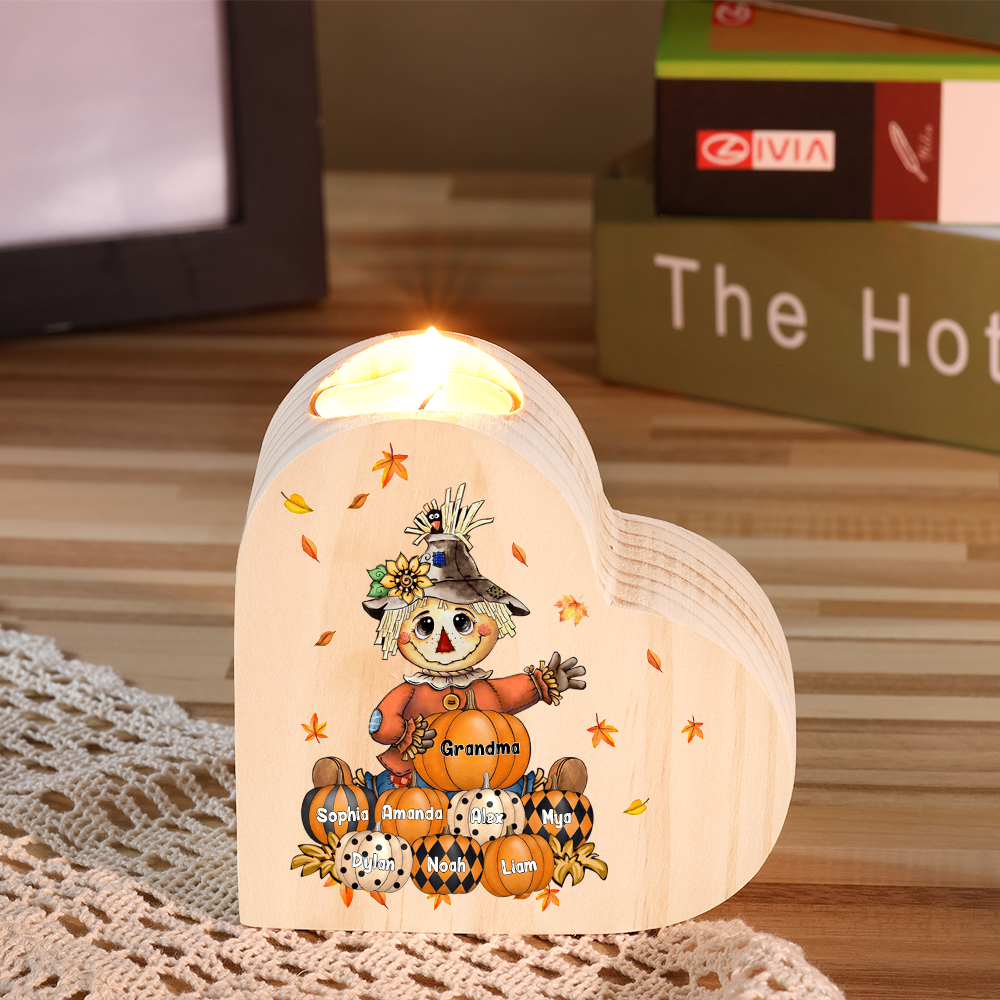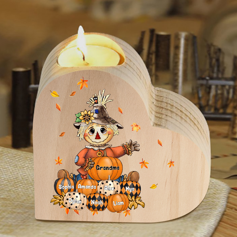 Heart-Shaped Halloween Candle Holder Engraved 8 Names Pumpkin Candlesticks Halloween Gift for Mom Grandma