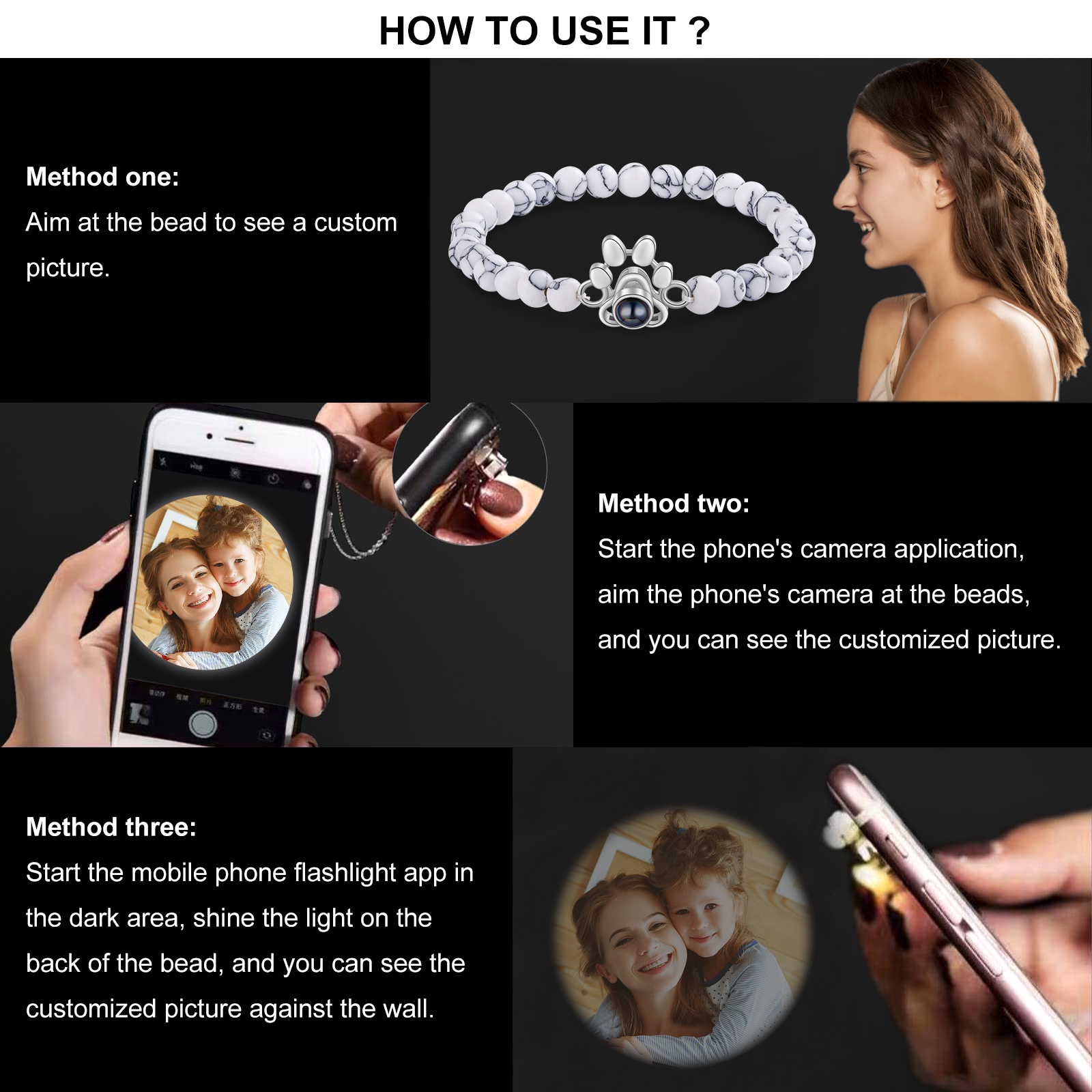 Personalized Dog Paw Projection Bracelet Customized Photo Bracelet Creative Gift for Her