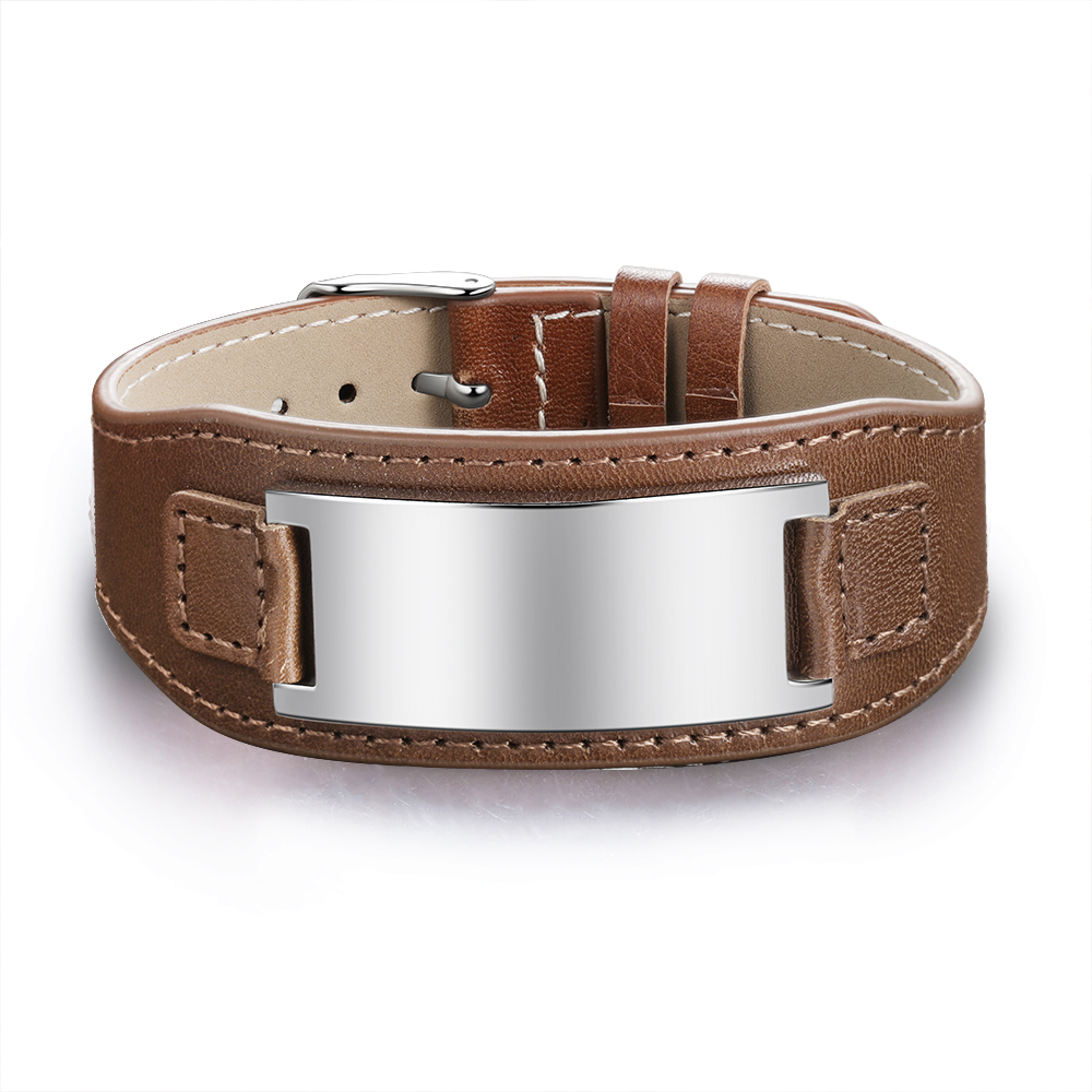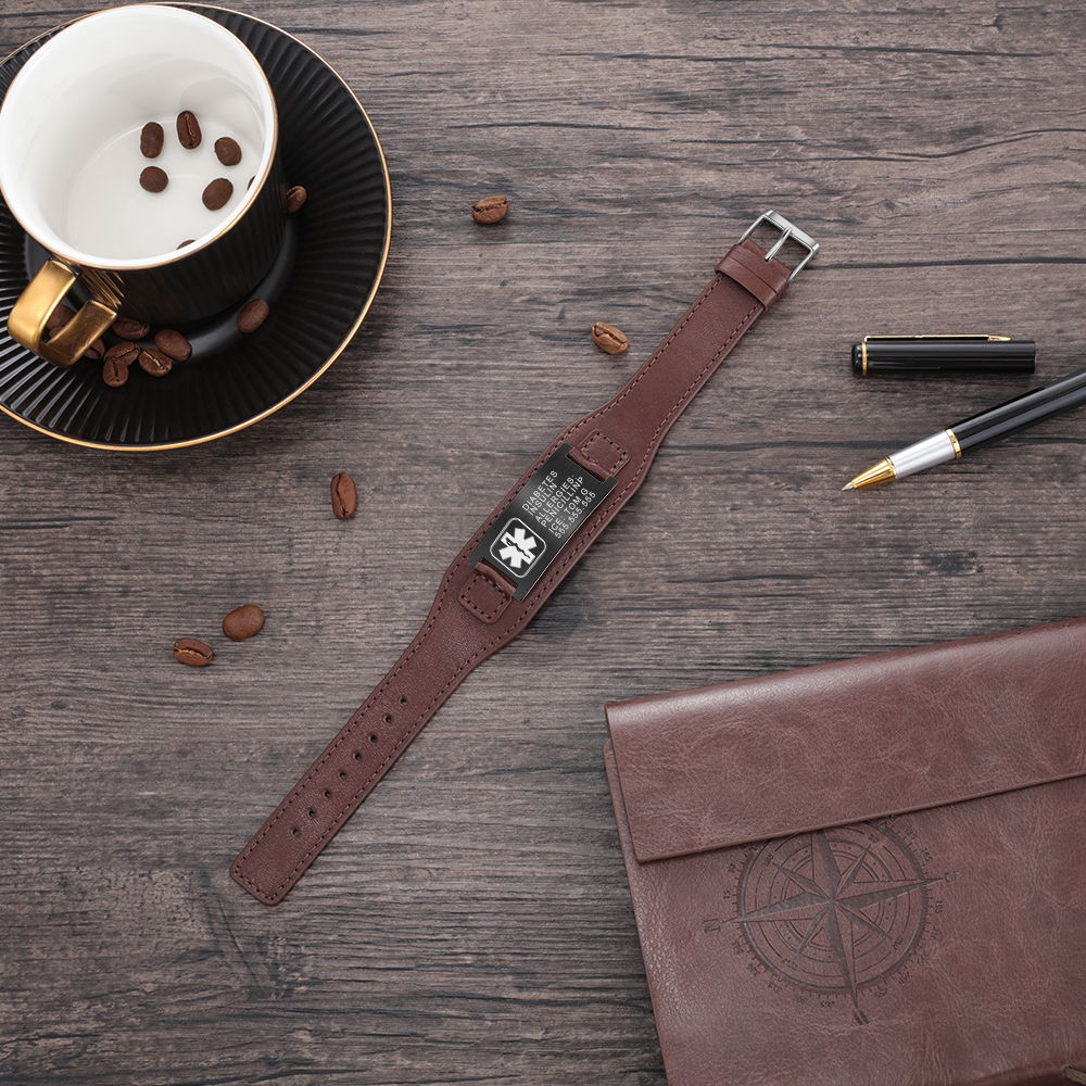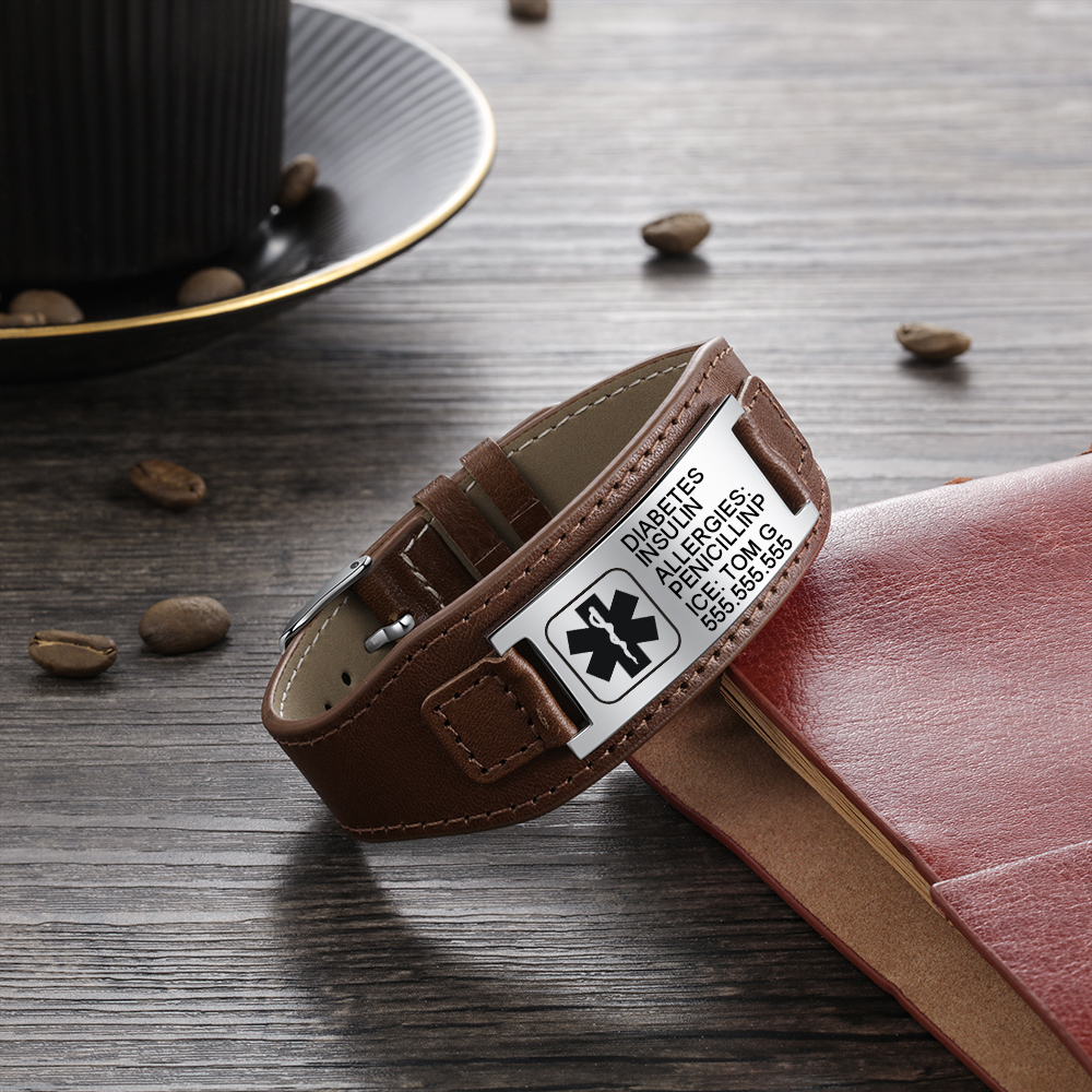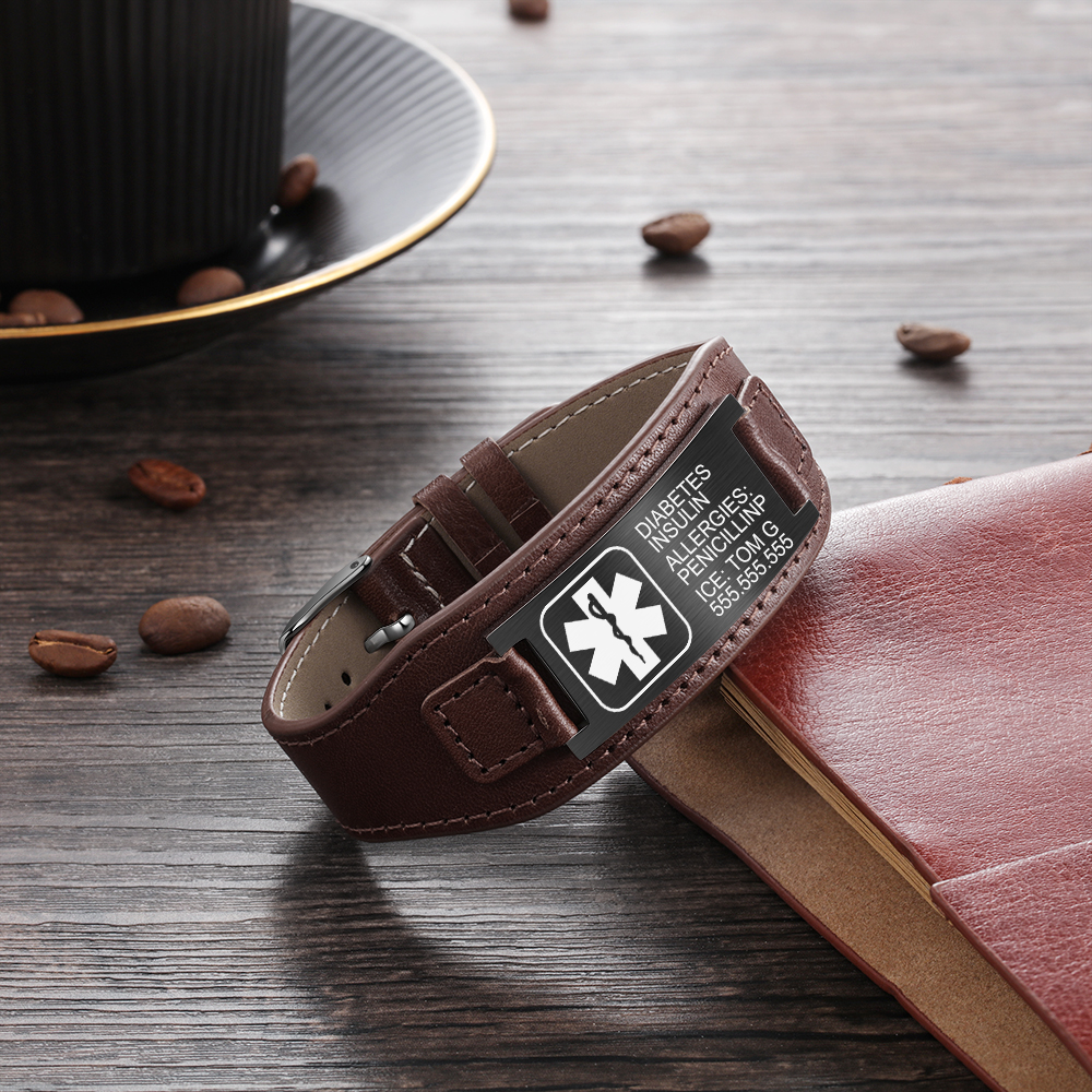 Personalized Leather Medical Alert Bracelet ID Wristbands Adjustable Custom Texts Emergency Bracelet