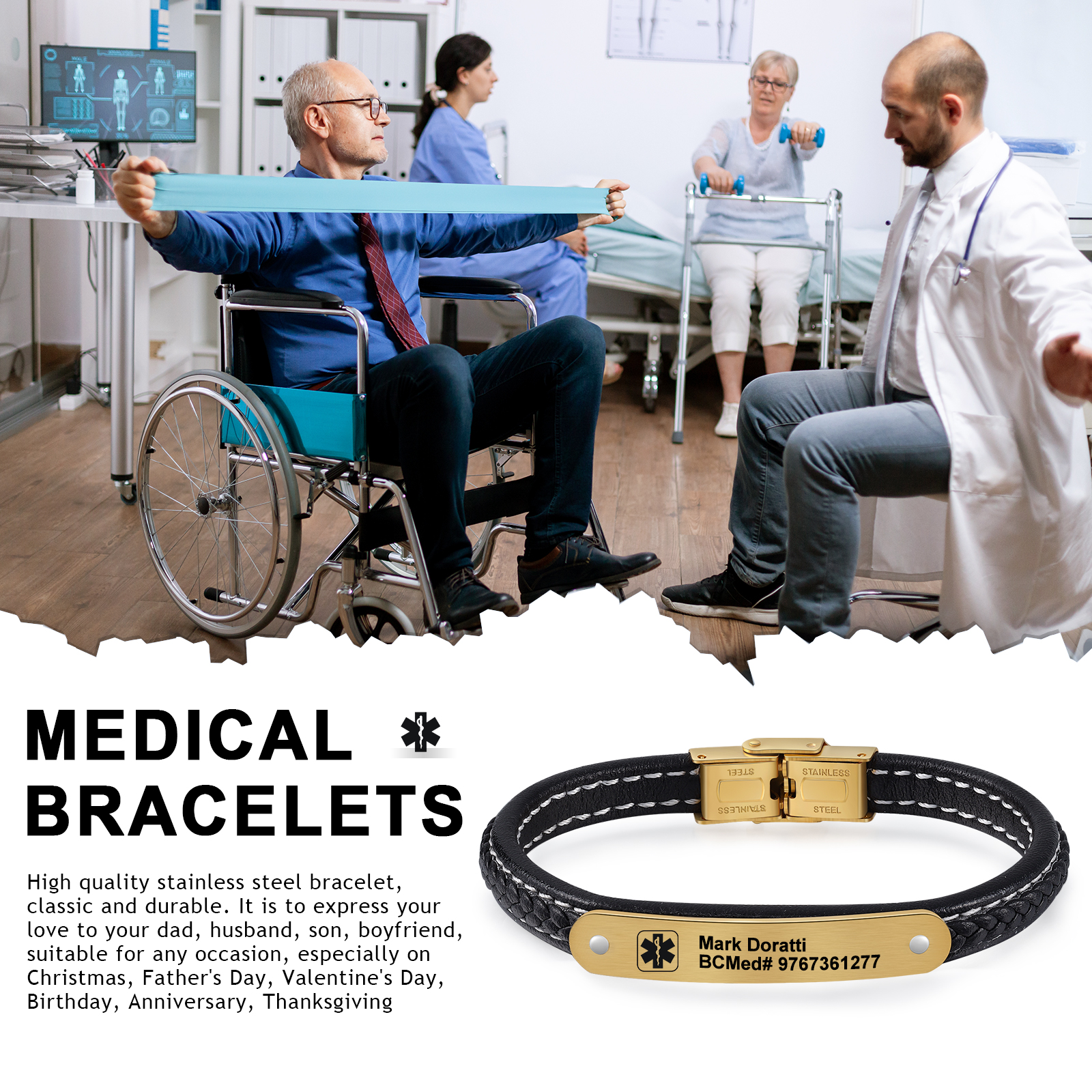 Personalized Medical Alert Bracelet ID Wristbands Custom Texts Leather Bracelet Gifts for Men