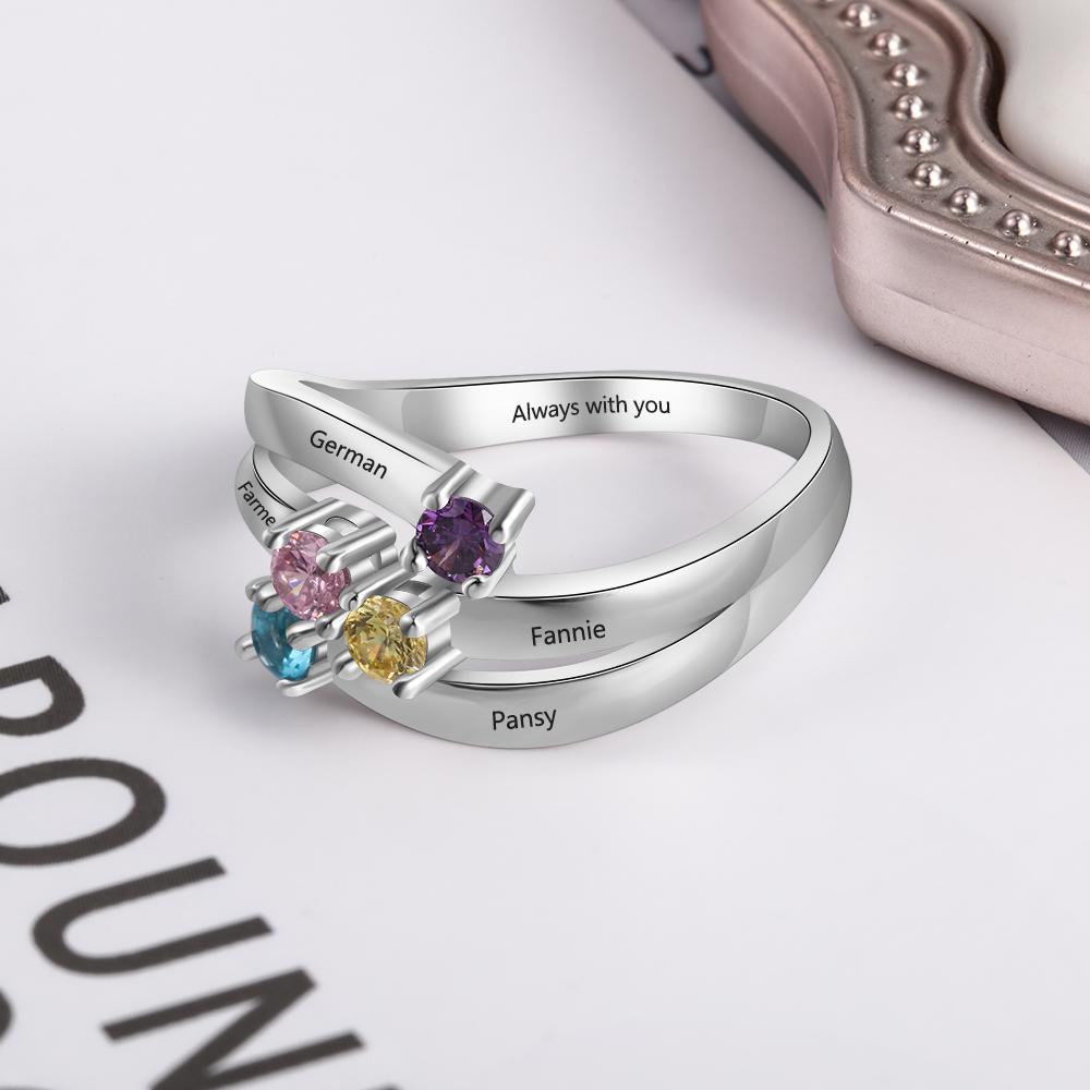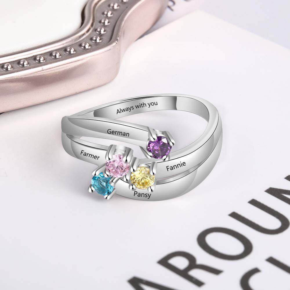 Personalized Mothers Ring 4 Stones Engraved 4 Names Custom Family Birthstone Ring Mother's Day Gift