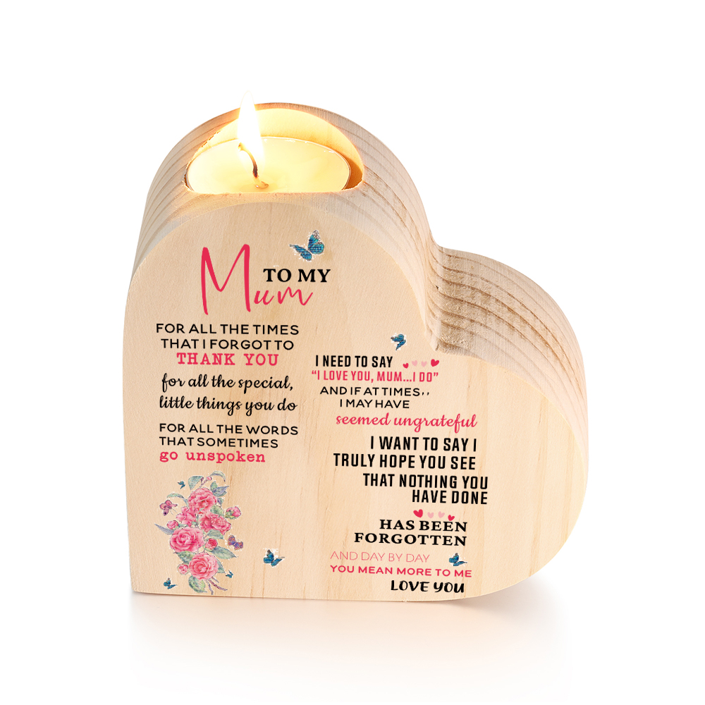 To My Mum-Wooden Heart Candle Holder Flower Candlesticks "I forgot to thank you" Gifts For Mother