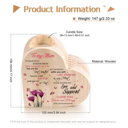 To My Mum-Wooden Heart Candle Holder Flower Candlesticks "Thank you for the love and support" Gifts For Mother