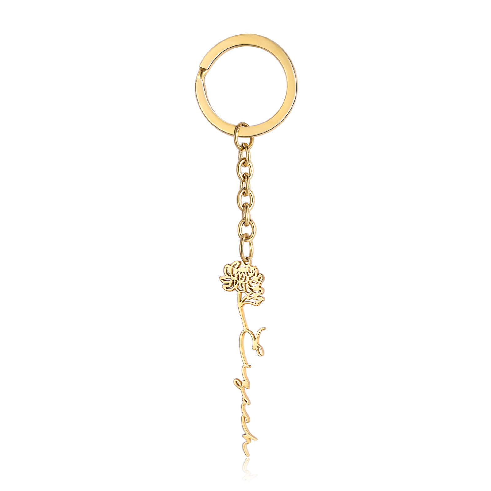 Chrysanthemum Name Keychain Personalized November Birth Flower Name Keychain Gifts for Her