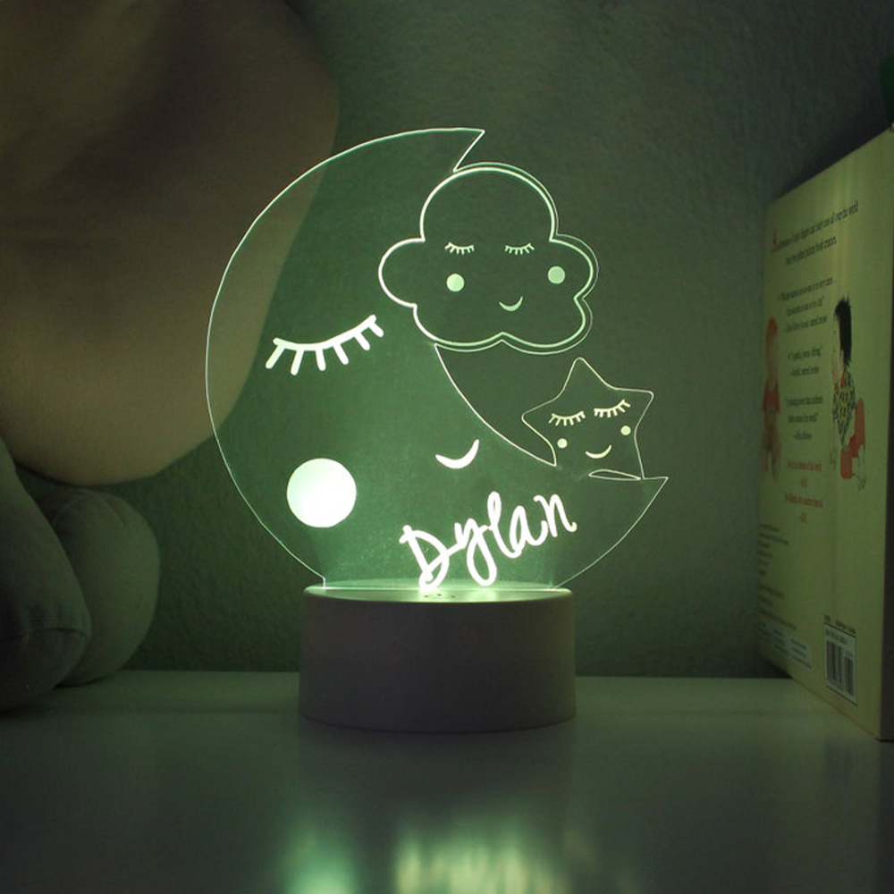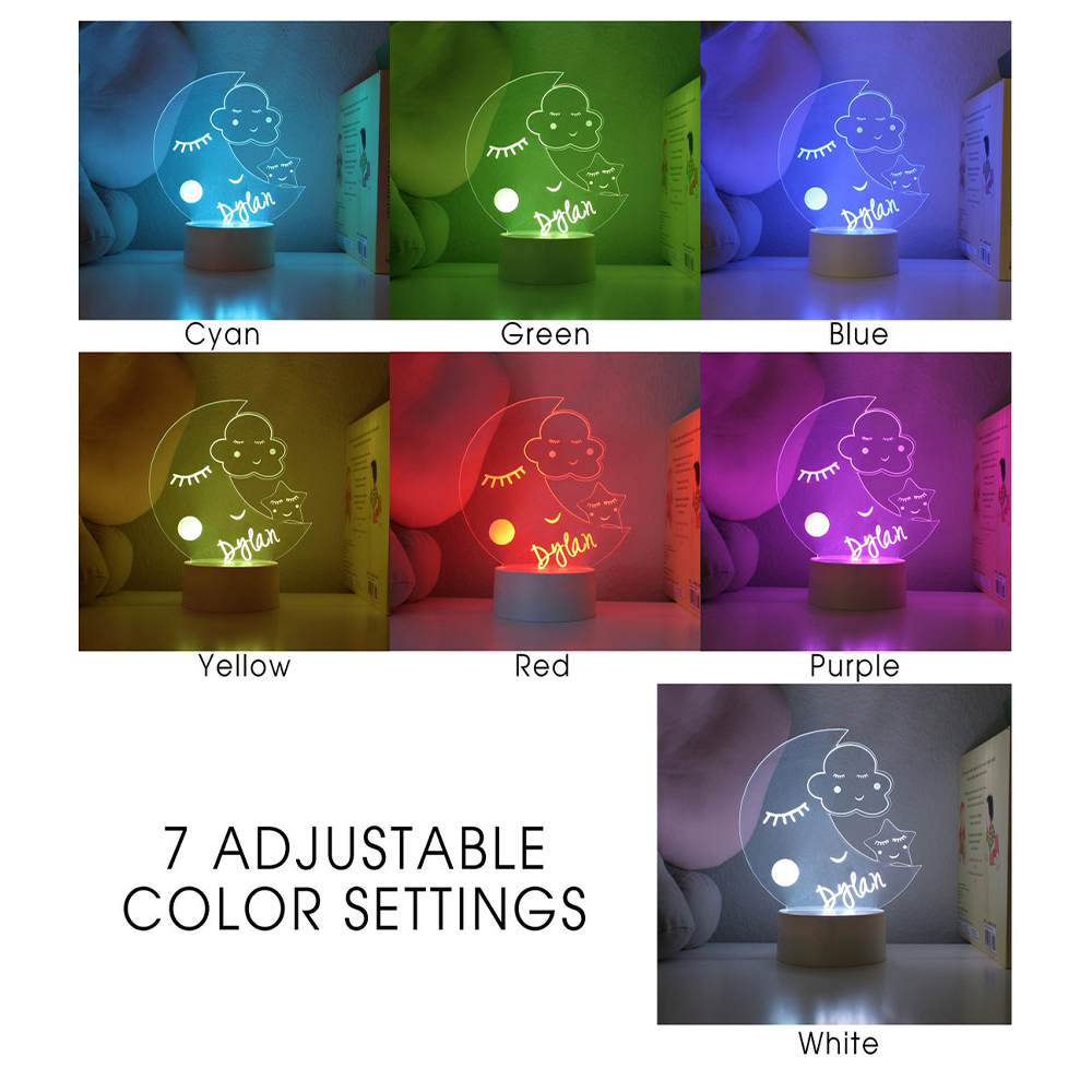 Personalized Moon and Star 3D Night Light Changeable Color Lamp for Kids