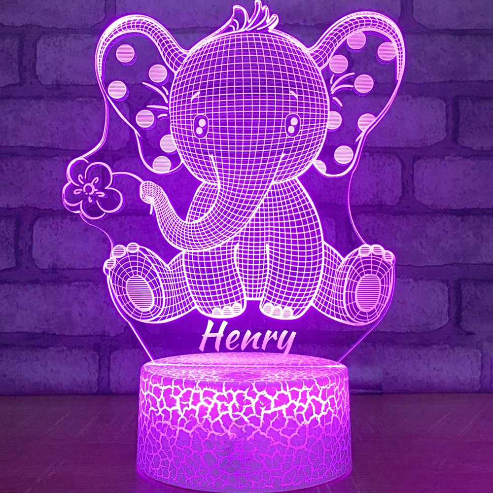 Personalized Elephant Night Light Custom Name Changeable Color Lamp