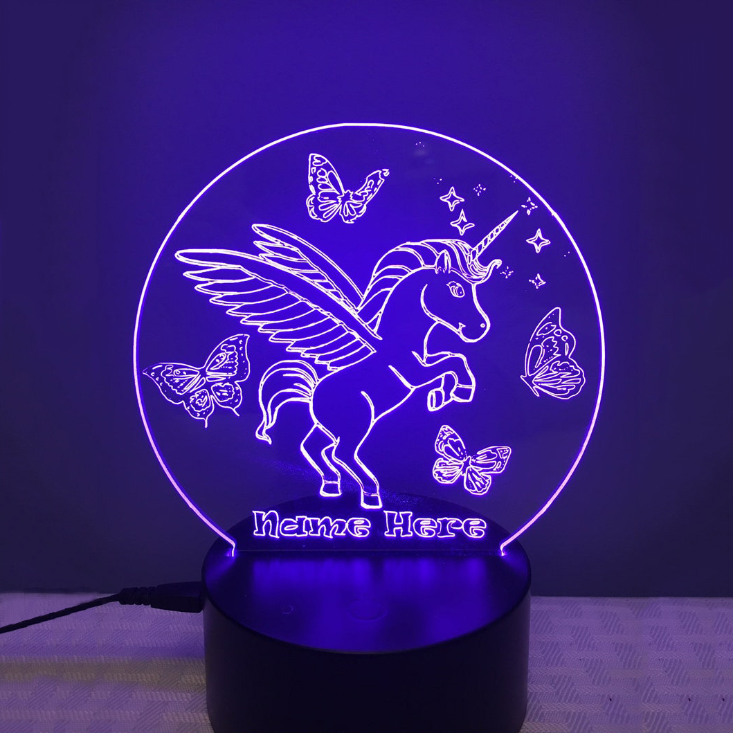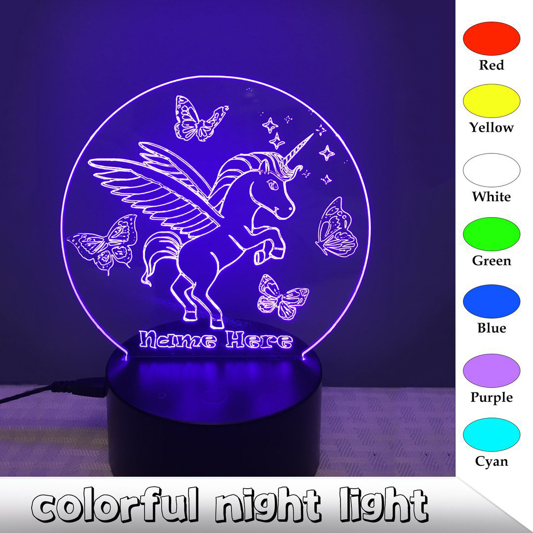 Personalized Unicorn Butterfly Night Light Custom Name Gift for Kid