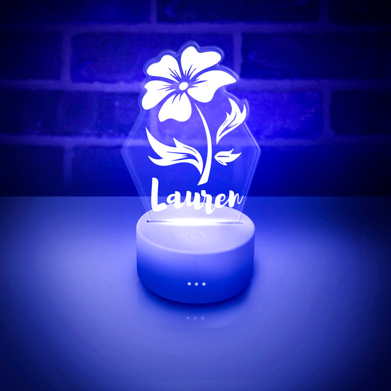Personalized Flower Night Light Custom Name Changeable Color Lamp
