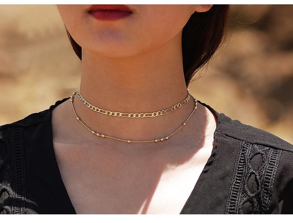 Women Fashion Double Layer Gold Chain Choker Necklace